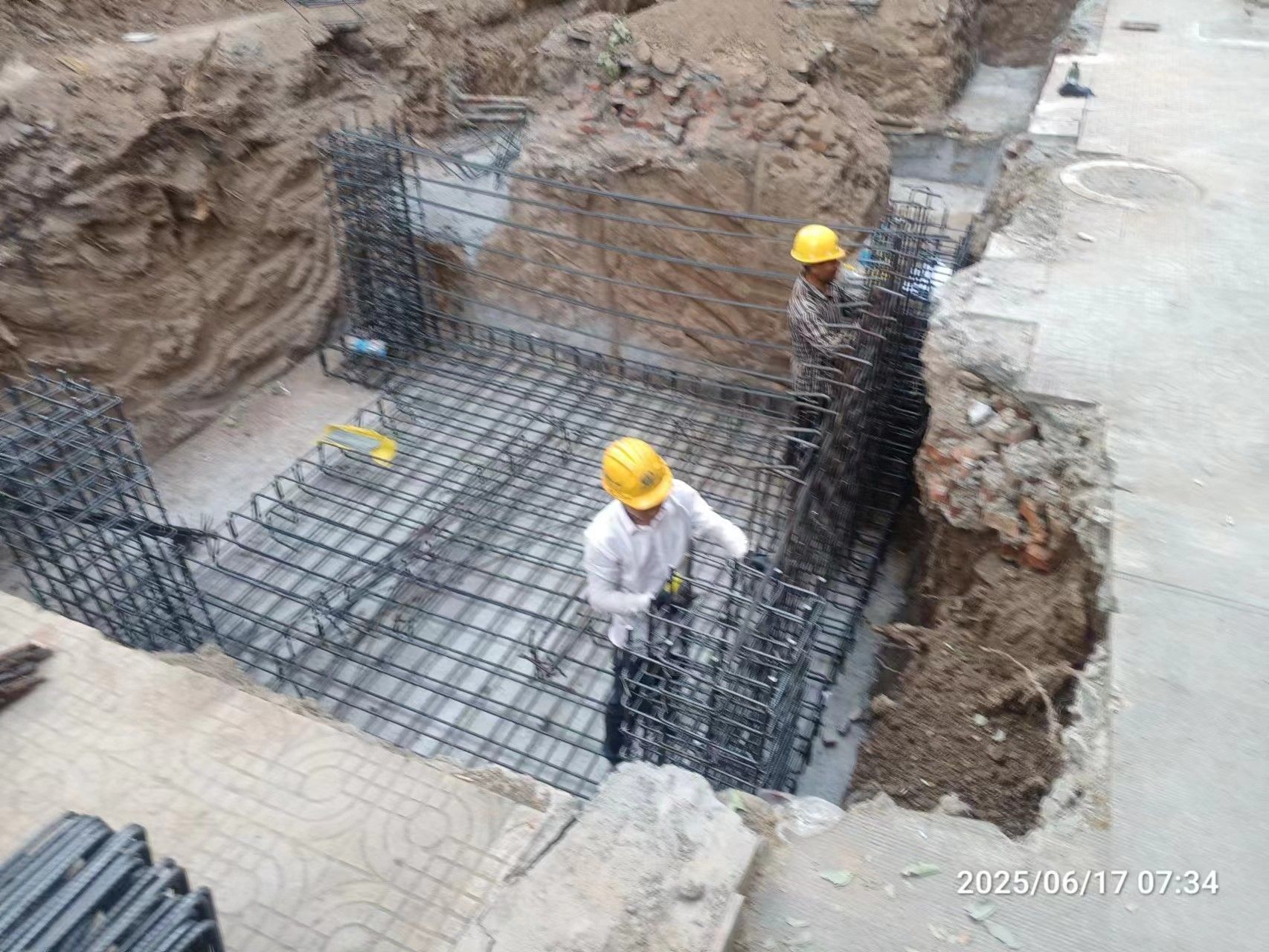 项目团队表示,目前施工物料准备充分,基础钢筋绑扎作业顺利,工序衔接科学紧凑,已完成“基坑开挖→地基夯实→钢筋绑扎”连贯工序,下一步将推进素混凝土垫层及基础混凝土浇筑。重点把控地基压实质量与周边建筑保护,为后续改造奠定坚实基础。