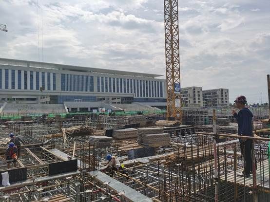 当前北区1 段负一层顶板框架梁模板支设已完成 10%,施工人员在高温下精准校准模板位置,确保每一处节点符合工程标准;2 段负一层顶板框架梁模板支设完成 5%,钢筋与模板交织的施工现场,工人师傅们挥汗如雨仍坚守作业。其中进度领先的 2 段负一层挡土墙、内墙钢筋绑扎工作已完成 90%,纵横交错的钢筋骨架在阳光下泛着金属光泽,为墙体结构筑牢根基。