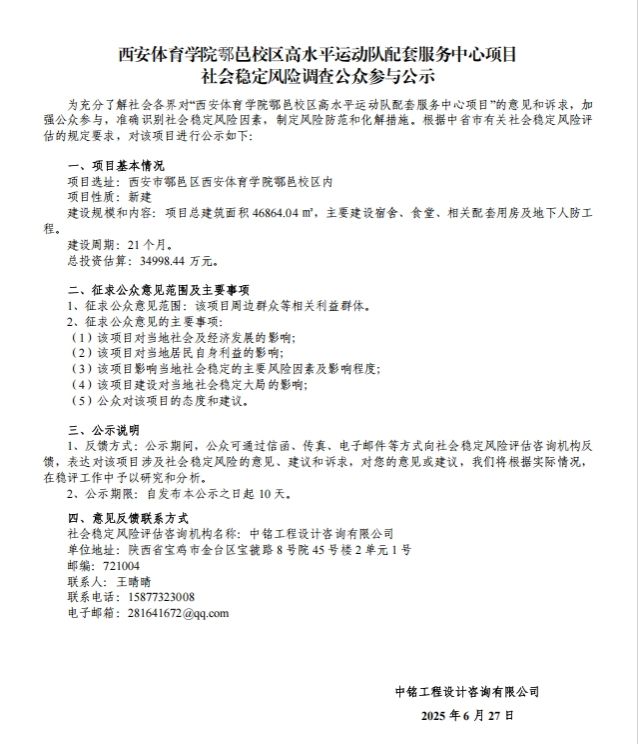 下一条:今年会官方网站鄠邑校区8#本科生、研究生宿舍楼项目社会稳定风险调查公众参与公示