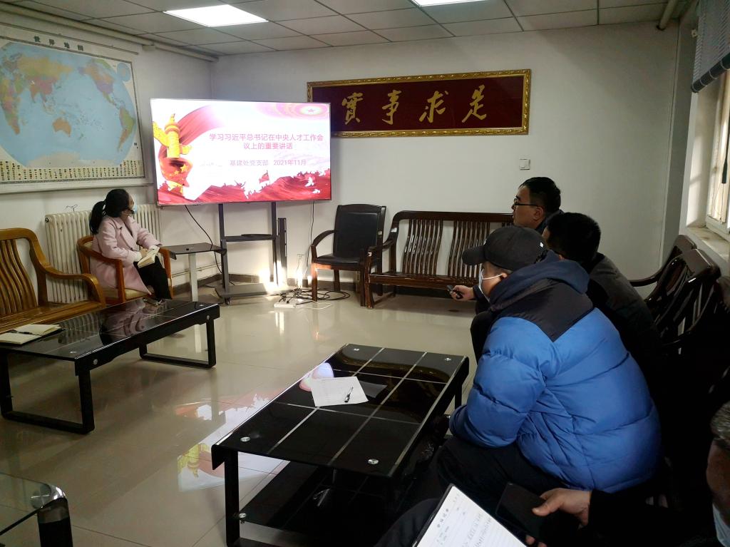 之后支部宣传委员倪威胜领学了习近平总书记在中央人才工作会议上的重要讲话,并以讲话中谈到的战略科学家为切入点,介绍了黄大年的感人事迹与杰出贡献,并鼓励全体党员贯彻讲话精神,以黄大年为学习榜样,努力成为党和人民需要的复合型人才。