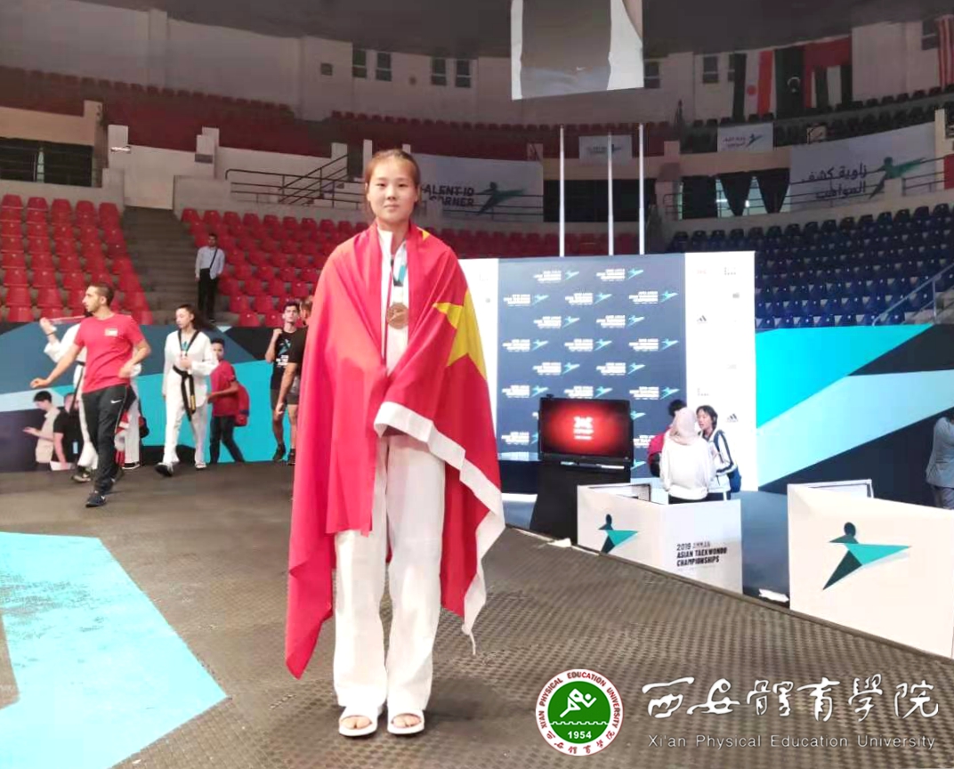 本网讯 7月18日至24日,亚州青年跆拳道锦标赛在约旦举行。我校跆拳道运动员王婉琛在比赛首日中夺得女子-59KG铜牌。