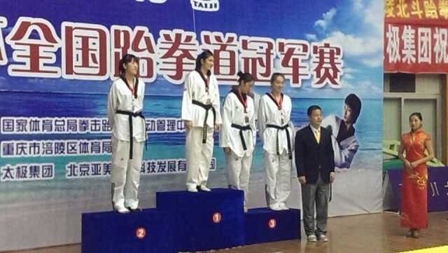 11月8日—11日,2013年全国“太极杯”跆拳道冠军赛于重庆涪陵区举行,来自全国各省市38支队伍237名运动员参加冠军角逐,我院跆拳道队塔拉、李东华、薛燕红、孟文龙分别夺得一金两铜一个第五的优异成绩,也是我院运动员近年来在国内高水平跆拳道比赛中获得的最好成绩。