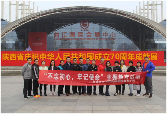 本网讯 “不忘初心、牢记使命”,10月23日下午,竞技体校组织党员开展主题党日活动,前往曲江国际会展中心参观了“辉煌壮丽七十年·追赶超越再出发-----陕西省庆祝中华人民共和国成立70周年成就展”,近距离感受祖国70年发展的伟大变革与成就。