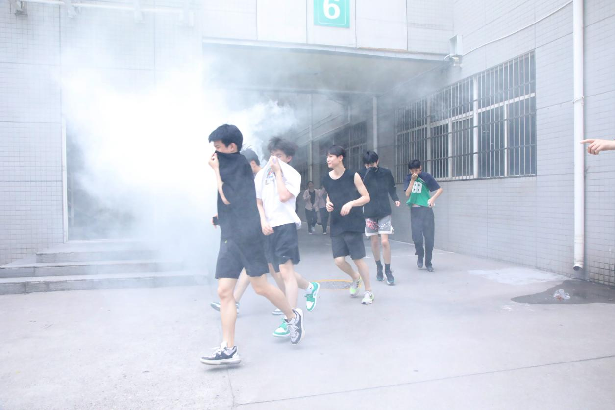 17时整,随着党总支书记王刚发出的疏散命令,活动现场浓烟突起,演练正式开始。学生们采取弯腰、低姿、捂住口鼻等防护措施,有序且迅速地撤离到室外的指定安全场所;老师们各司其职,引导学生们有序、安全撤离。经过短暂的撤离过程,全体学生顺利在指定地点集合,并按计划方案迅速整队,清点、统计人数。 整个演练活动组织有序、分工明确、有条不紊,达到了预期的目的。