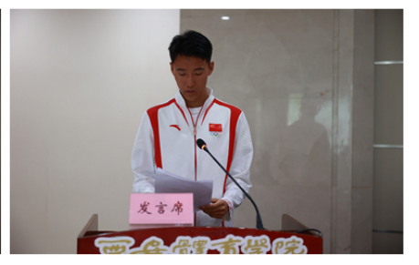 在颁奖仪式上,竞走队蒋秋艳作为优秀教练员代表,以“汗水献给赛道 青春献给竞走 成绩献给今年会”为题,分享了她从运动员到教练员角色的转变,讲述了她从大秦岭中的普通家庭女孩,是如何走进巴黎奥运会的心路历程,表达了无论面对胜利还是失败,都坚持不懈的决心;我校培养的巴黎奥运竞走选手李炎东作为学校鏖战之星代表,在发言中介绍了习近平总书记在接见代表团时的情景,“体育不仅是竞技的较量,更是民族精神的体现。”这句话深深地激励着他,使他内心澎湃不已、激动万分,更坚定了他往后在任何赛场的拼搏意志,他表示要牢记习近平总书记的嘱托,戒骄戒躁,再接再厉,为体育强国建设贡献力量。