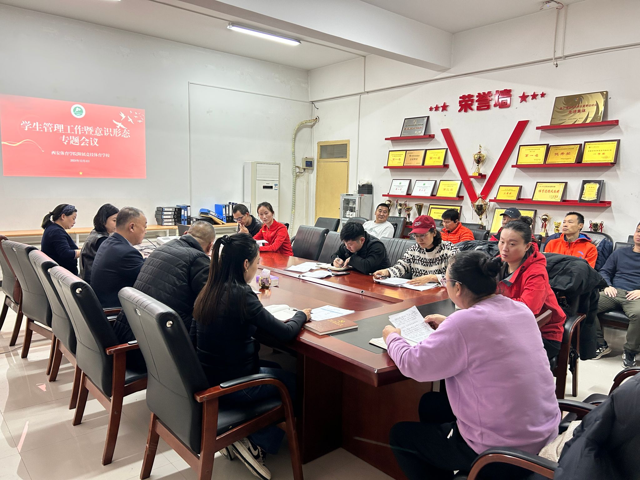 为确保学生管理和队伍建设的规范化、科学化,进一步加强我校意识形态工作,我校于12月4日上午召开了学生管理工作暨意识形态专题会议。各训练队、辅导员、后勤保障部门及教学科等相关负责人参加了会议,会议有竞训科科长张蕊主持。