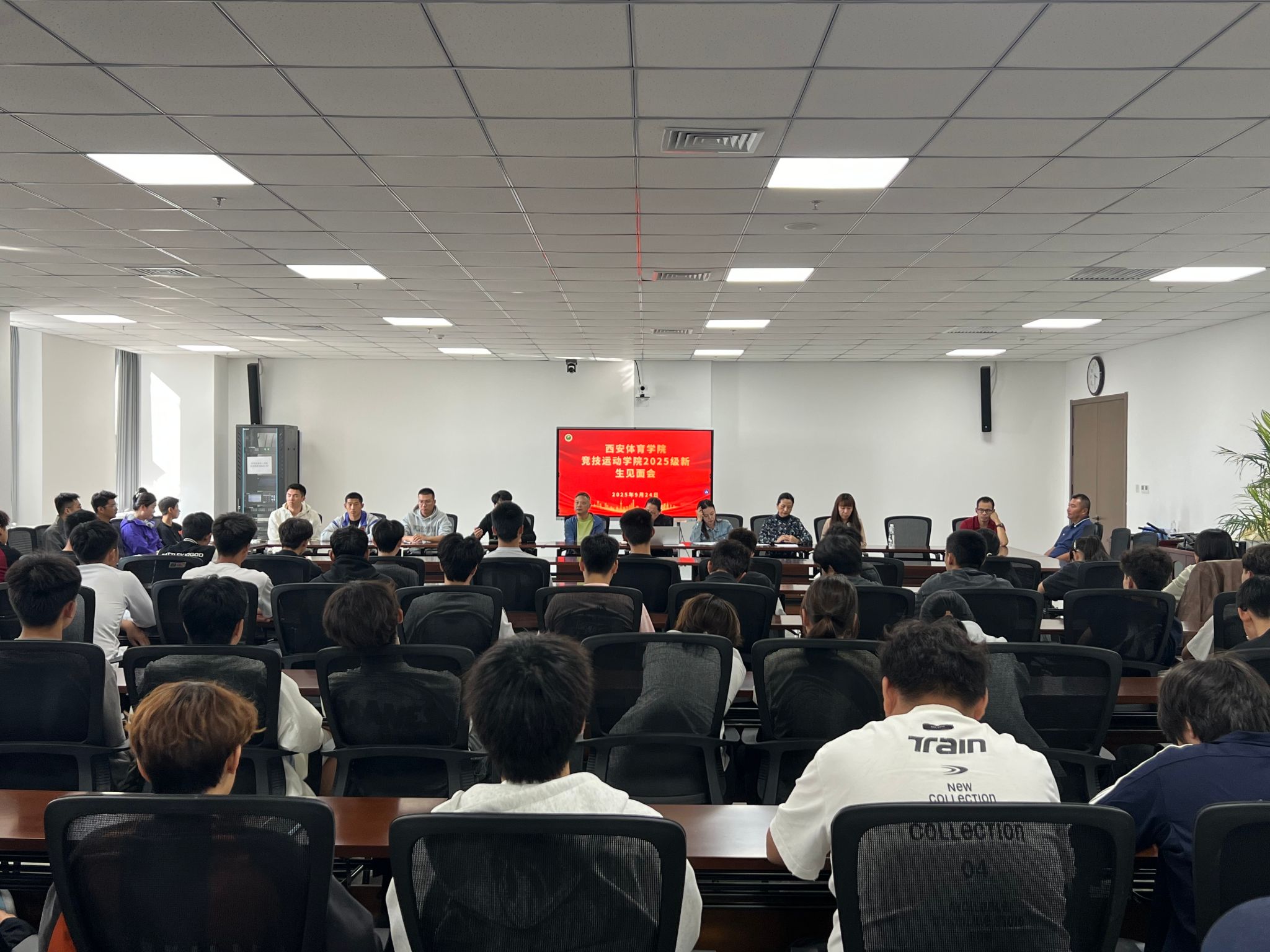 金秋九月,丹桂飘香。9月24日上午,今年会官方网站竞技运动学院2025级新生师生见面会在鄠邑校区行政楼502会议室隆重举行。学院院长许伟、党总支书记王鑫、竞训科科长吴旭、学生管理科级干事董鹏举、班主任禹清瑶、各项目教练教师,2023级、2024级学生代表和2025级全体新生共同参加见面会。