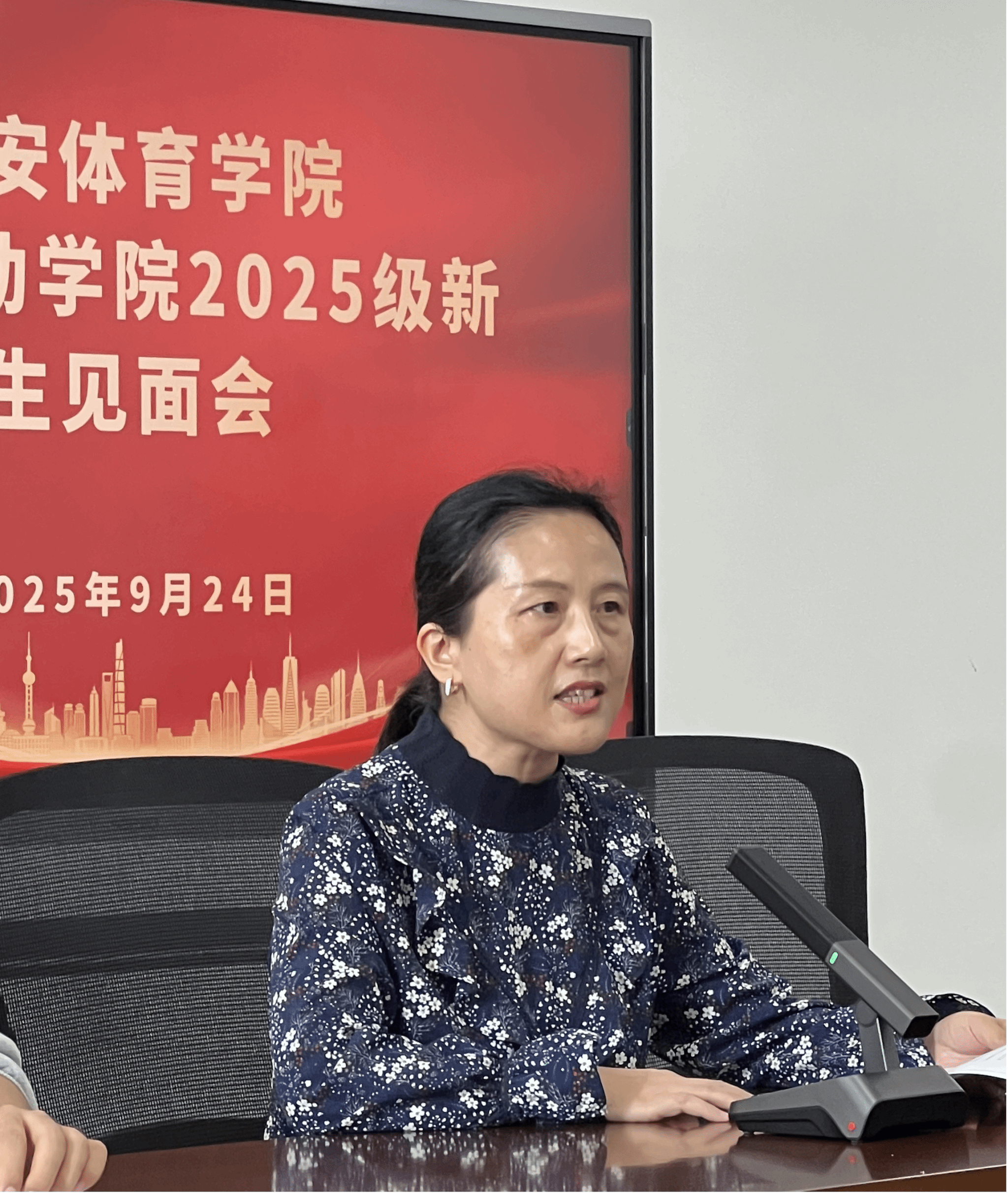 见面会由学院党总支书记王鑫主持。王鑫书记首先代表学院党政,对2025级新同学的到来表示热烈欢迎,向为学院竞技体育事业发展辛勤付出的全体教职员工和同学们致以诚挚问候,并逐一介绍了出席见面会的领导与教师。