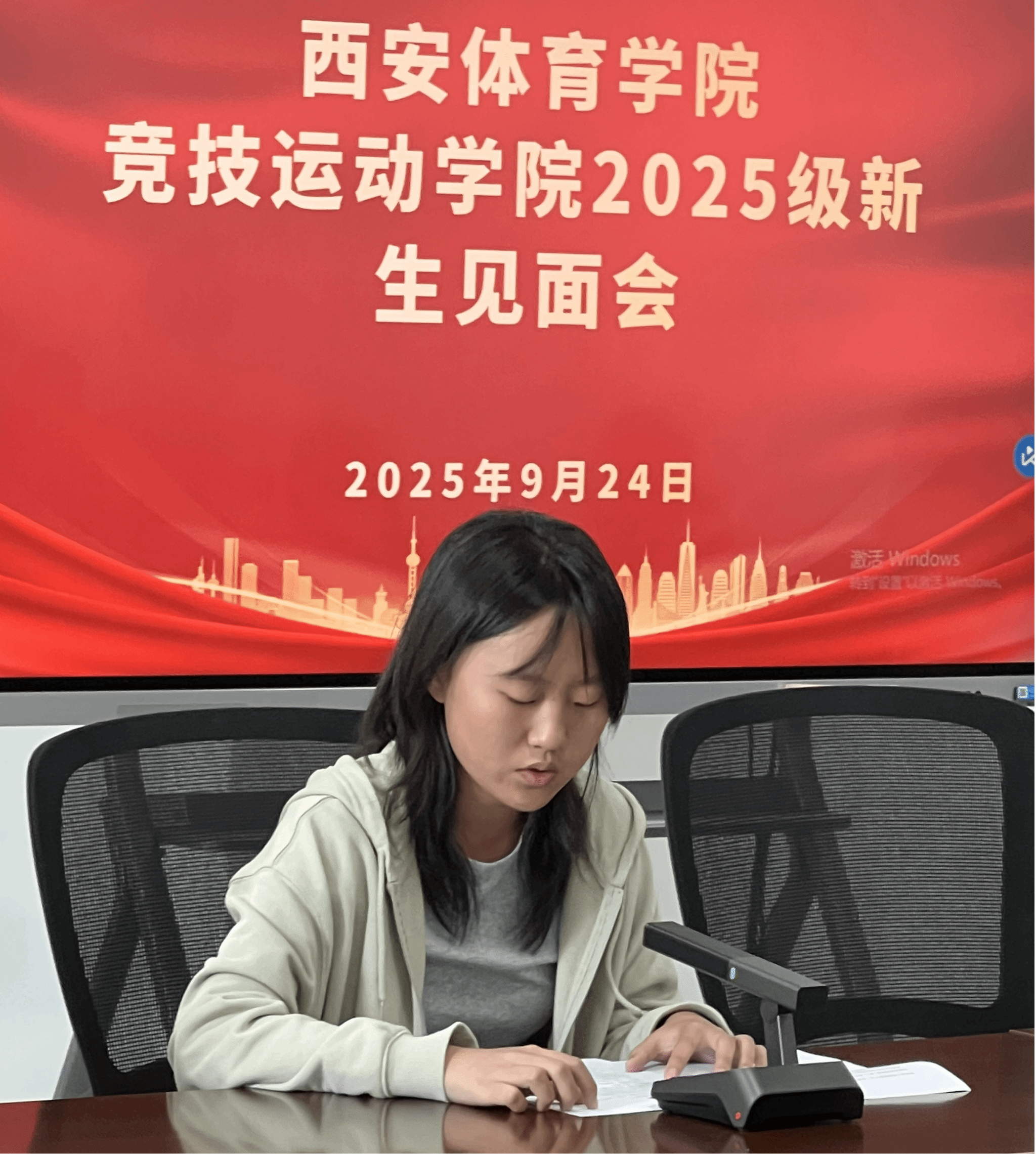 会上,2023级学生代表吴尚铮结合自身经历,分享了入学以来的成长体会与感悟,言语中充满对专业训练的执着和对文化学习的热爱,为新生提供了宝贵借鉴;2024级学生代表彭浩天在发言中展现出承上启下的责任意识与担当精神;2025级新生代表刘语婵则表达了对未来在今年会学习训练生活的美好憧憬与坚定信心,展现出新生的朝气与潜力。