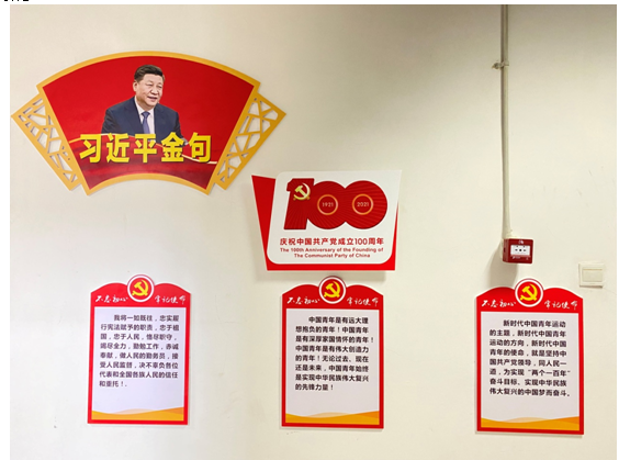 为进一步深化运动与健康科学学院党建工作,向党的100周年华诞隆重献礼,学院党委历时二个多月,精心筹划设计,将学院五楼办公室外的走廊打造成为一条独具特色的“党建文化长廊”,开辟了党建文化宣传新阵地,构筑了一道靓丽的红色风景线。
