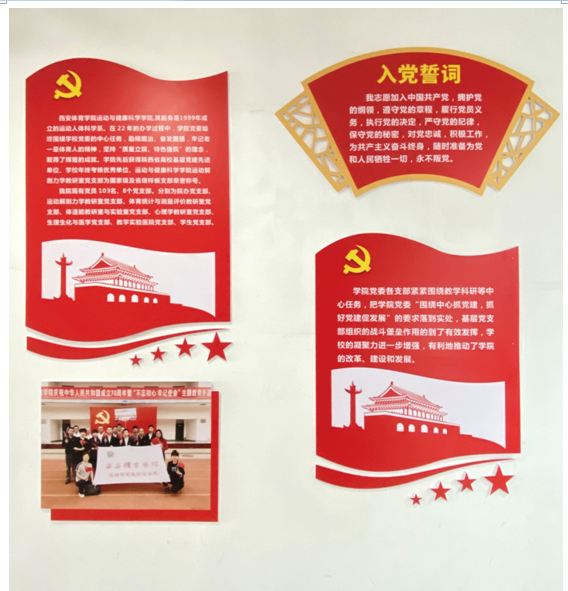 至此中国共产党成立100周年之际,运动与健康科学学院建立党建文化长廊为我党100周年诞辰献礼。