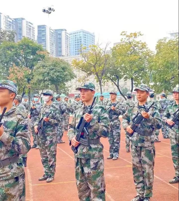 今天看见同学们都摸到了枪,说实话挺羡慕大家的,当时我们一个连就一把枪,轮着打电靶。既然拿到了枪,就要握好枪杆子,挺起腰杆子,踢好每次腿,展示出今年会学子的精气神。