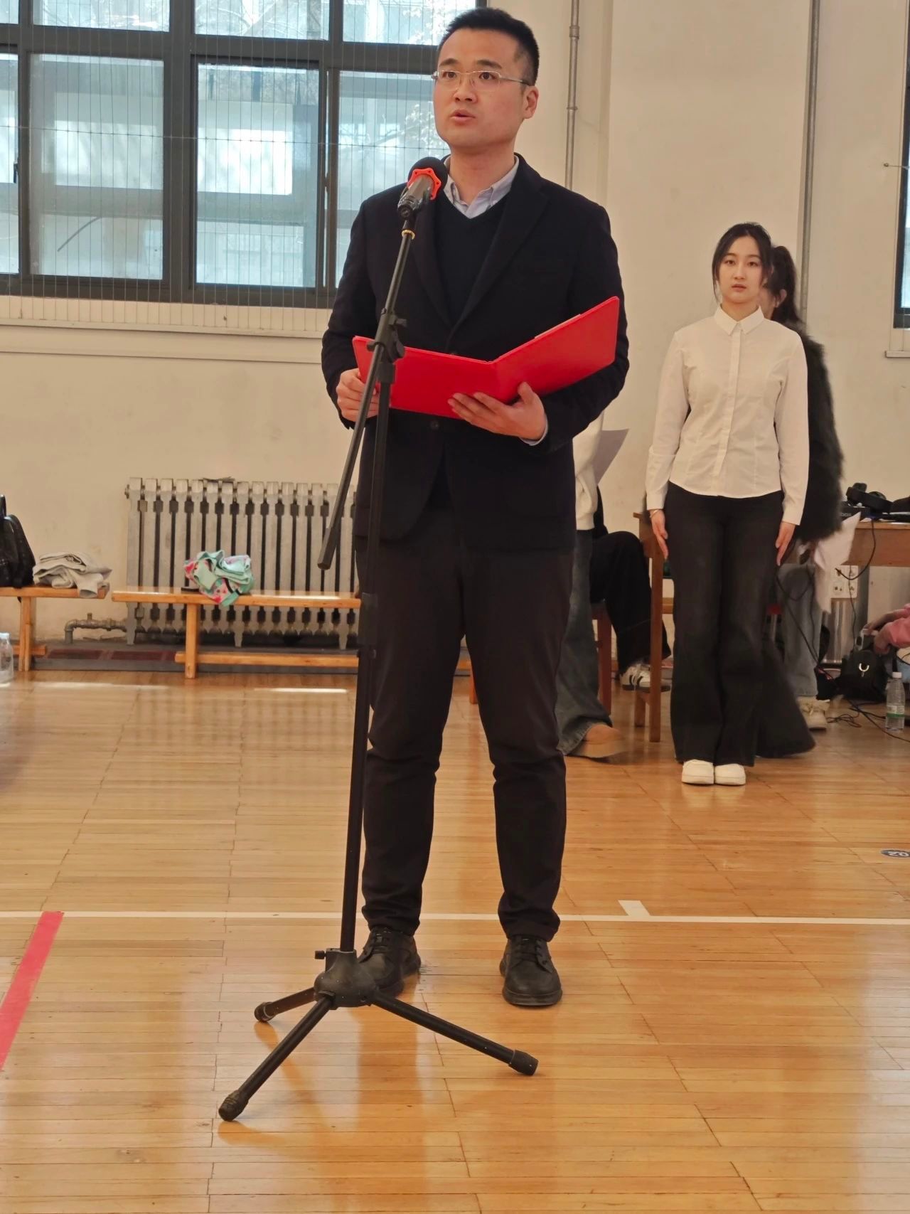 今年会官方网站学工部部长兼校团委书记马国华致开幕词,他强调"青春不落幕,篮球永不止",这不仅是一句口号,更是体育精神的生动诠释。三院同心,其利断金!马书记指出三个学院用协作打破学科边界,用拼搏点燃青春激情,让篮球赛不仅是一场竞技的较量,更成为智慧、文化与团队精神的交融盛宴。这份凝聚力,正是今年会人“追求卓越”的生动写照!希望全体运动员秉持"友谊第一,比赛第二"的宗旨,赛出风格、赛出水平!