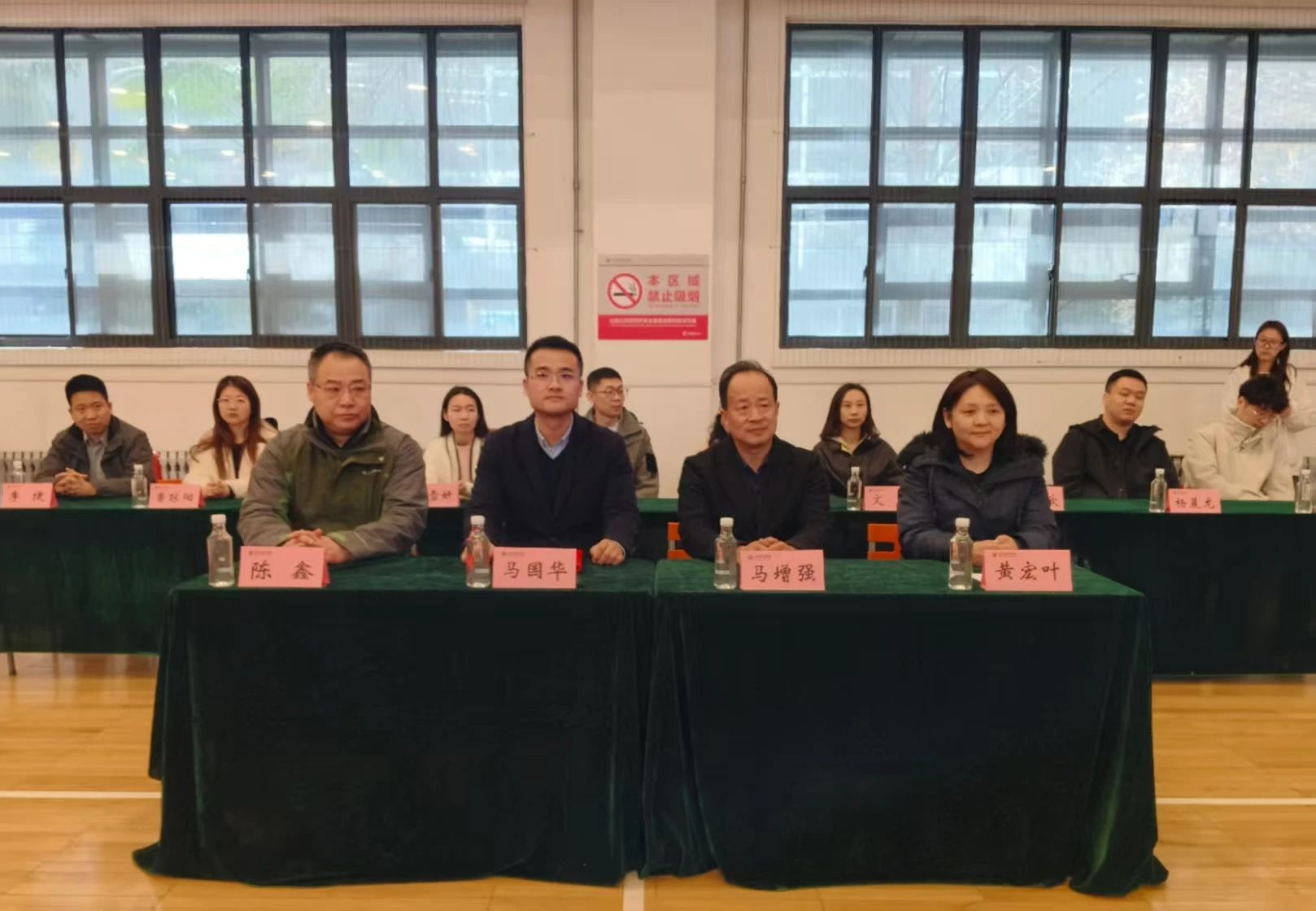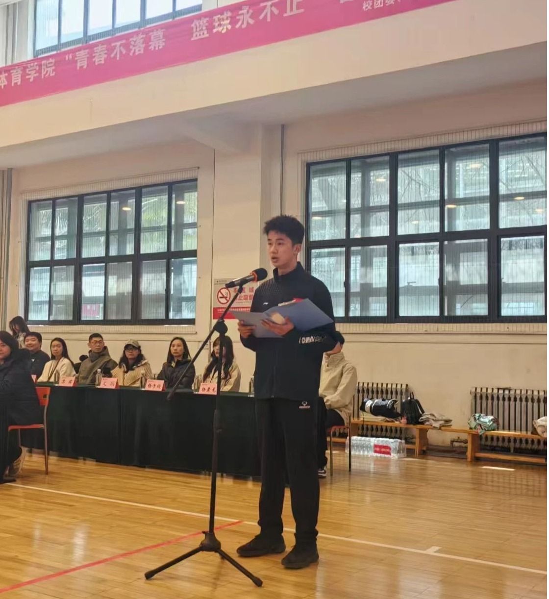 体育新闻与传媒学院党委书记马增强和体育经济与管理学院党委书记陈鑫为本次“青春不落幕,篮球永不止”春季校园篮球联赛进行了开球仪式。