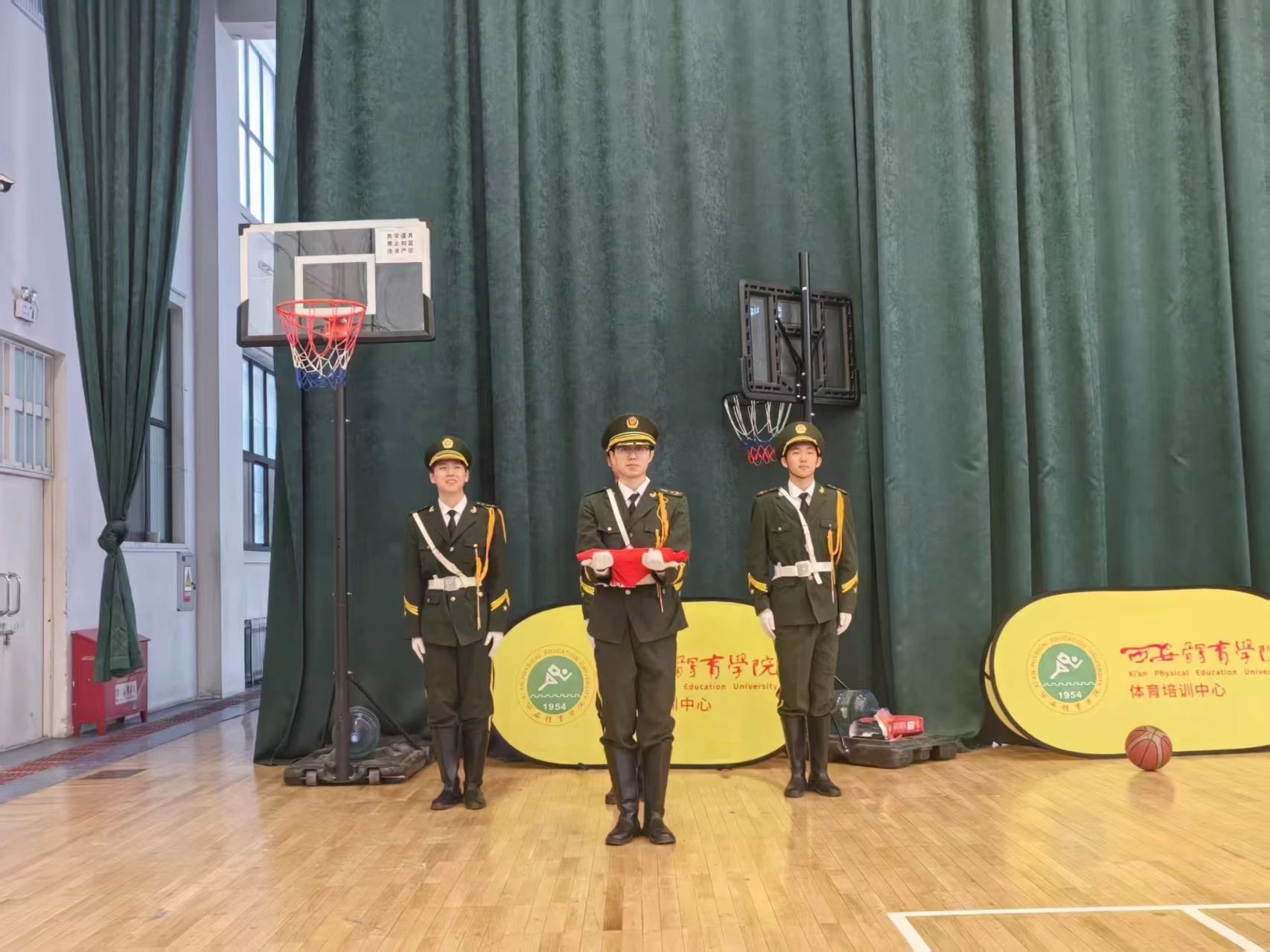 在庄严的国歌声中,我们共同面向五星红旗,心中激荡着对祖国的无限热爱与自豪。这一刻,我们心手相连,共同见证着篮球梦想的启航。