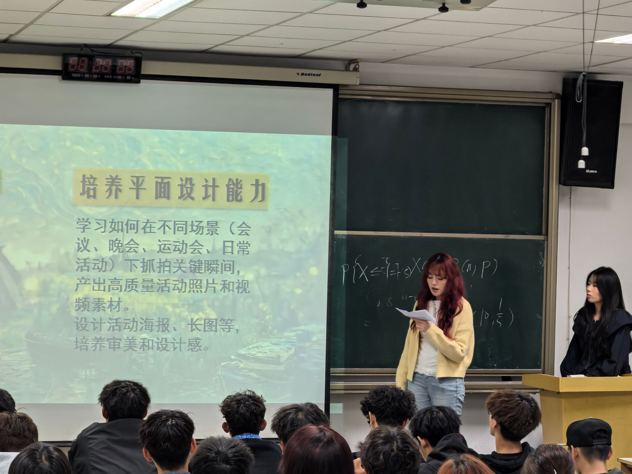 生活部:聚焦学生的日常生活服务与管理,组织每周日和三的晚间查寝(工作人员需提前集合),开展宿舍安全与卫生检查,完成排班、制表、评分及成绩汇总;按时值班并支援其他部门工作,是贴心、细致的后勤保障力量。