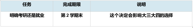 • 确定毕业后初步方向(第 1 学期末):考研还是就业? 哪个领域?