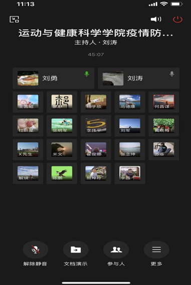2022年1月5日上午,运动与健康科学学院在线上召开学院疫情防控会议。运动与健康科学学院党委书记刘勇、院长刘涛、教学实验医院院长何昌谋,全院教研室主任、支部书记、科级以上干部参加此次会议。会议由刘涛院长主持。