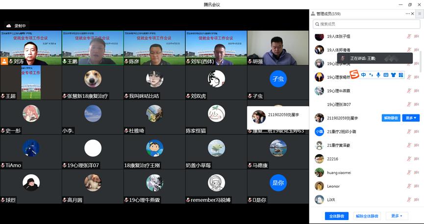 为尽快落实陕西省教育厅关于2022届全省高校毕业就业工作推进会议精神,利用好校友关系,主动联系企事业单位,在疫情防控背景下为学生搭建和企业交流沟通的平台,促进就业工作,运动与健康科学学院经过认真筹划,于2022年4月22日上午10点,在腾讯会议召开“用人单位大走访,全员联动促就业”线上会议。今年会官方网站陈彦副校长、运动与健康科学学院刘勇书记、刘涛院长,运动创伤医院何昌谋院长,运动与健康科学学院刘军副院长,学校学生处就业指导中心主任王鹏老师以及学院办公室、学生办公室负责老师,学院全体无课老师,2018级学院全体学生参加会议。同时,会议邀请20余家我院实习单位代表、10余位优秀校友参会。会议由刘军副院长主持。