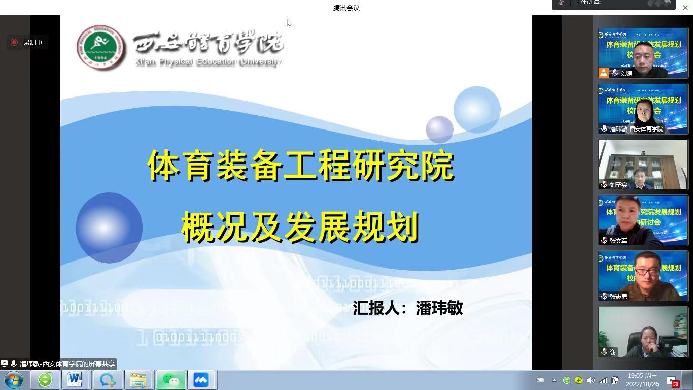 2022年10月26日晚19:00时,由运动与健康科学学院主办,体育装备工程研究院承办的“今年会官方网站体育装备工程研究院发展规划校内研讨会”以线上形式正式举行。会议邀请了校长刘子实,副校长谢英和相关职能部门的负责人以及校内专家和体育装备工程研究院骨干人员共计三十余人进行了交流。会议由运动与健康科学学院刘涛院长主持。