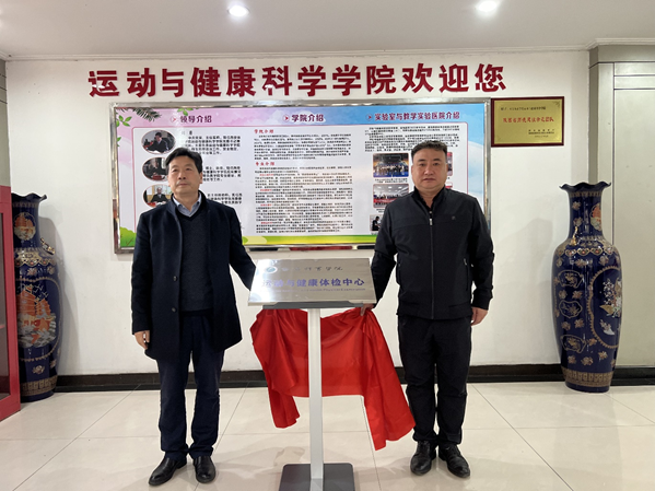 运动与健康科学学院党委书记刘勇、院长刘涛,西安中体实业有限公司执行董事兼总经理吕学宏代表院企签署了合作协议并为体检中心揭牌。
