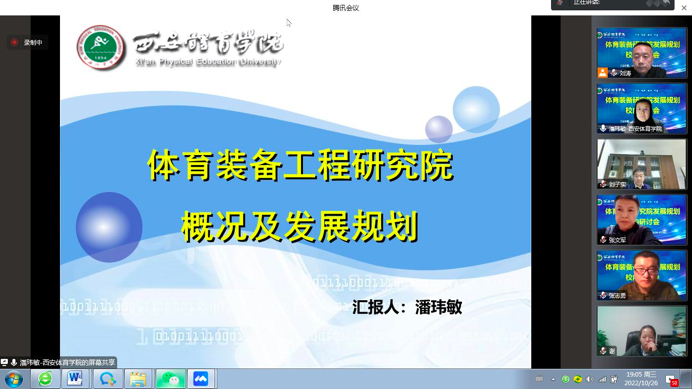 今年会官方网站体育装备工程研究院是在建设“健康中国、体育强国”,高校积极开展科技创新的大背景下,学校领导高瞻远瞩、未雨绸缪,根据我校发展现况新建的一个科研学术平台。刚刚胜利闭幕的二十大明确提出要实施科教兴国战略,强化现代化建设人才。为了深入贯彻党的二十大精神,紧密结合我校体育装备工程研究院现有状况,有效促进体育装备工程研究院未来良性发展,运动与健康科学学院决定举办此次线上研讨会。历时三小时的会议中,与会领导、专家及骨干教师围绕研究院执行院长潘玮敏教授及张志勇老师汇报的体育装备工程研究院的发展宏观规划及具体实施方向展开热烈讨论。大家就研究院未来发展的细化目标,学科优势及已有研究成果,强化成果转化、规划制定细则等提出了很多宝贵的意见和建议。
