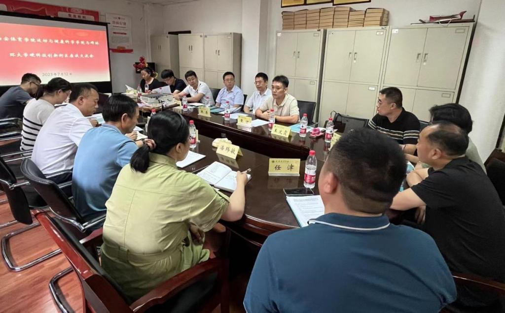 为进一步深化学习贯彻习近平新时代中国特色社会主义思想主题教育,坚持围绕中心、服务大局,把调查研究与学科发展结合起来,运动与健康科学学院坚持开放办学思路,积极拓展办学资源。7月12日,运动与健康科学学院与碑林环大学硬科技创新街区座谈交流会在实验楼五楼会议室召开。运动与健康科学学院院长刘涛,教学实验医院院长何昌谋,体育装备工程研究院执行院长潘玮敏,运动与健康体检中心副主任郝琳,碑林环大学创新产业带管委会主任林原、西安先华医院有限公司董事长黄健,西安交大机械学院/西安交大-米兰理工联合设计学院副教授李宏伟,西安创新设计研究院有限公司副总经理陈勇等17等人参加会议。座谈交流会由刘涛主持。