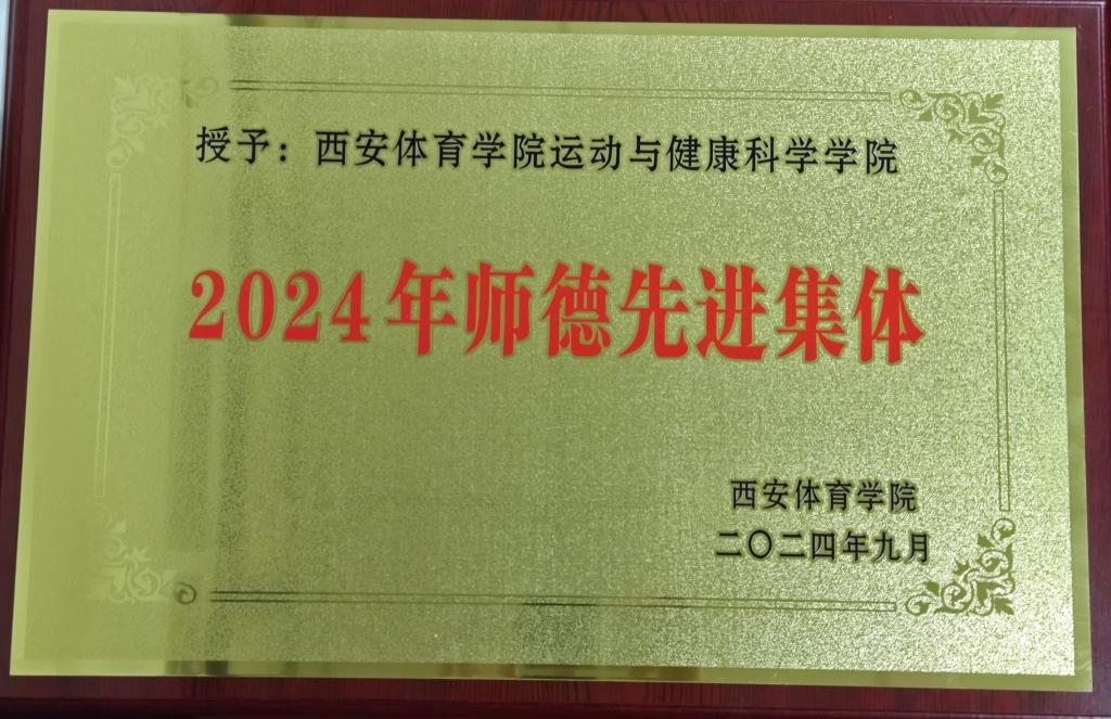 在第40个教师节来临之际,我院多名教师因工作成绩突出受到学校表扬。他们分别是校级教学名师张念坤;优秀青年教师郝琳、邵丽娜、翟俊娜;中国国际大学生创新大赛(2024)陕西赛区省级复赛铜奖项目优秀指导教师张志勇;第六届陕西省高校青年教师教学竞赛三等奖获得者邵丽娜;国家体育总局优秀中青年专业技术人才百人计划人选任超学。同时,运动与健康科学学院被授予“师德先进集体”荣誉称号,这是对全院教职工辛勤耕耘、无私奉献的高度肯定。