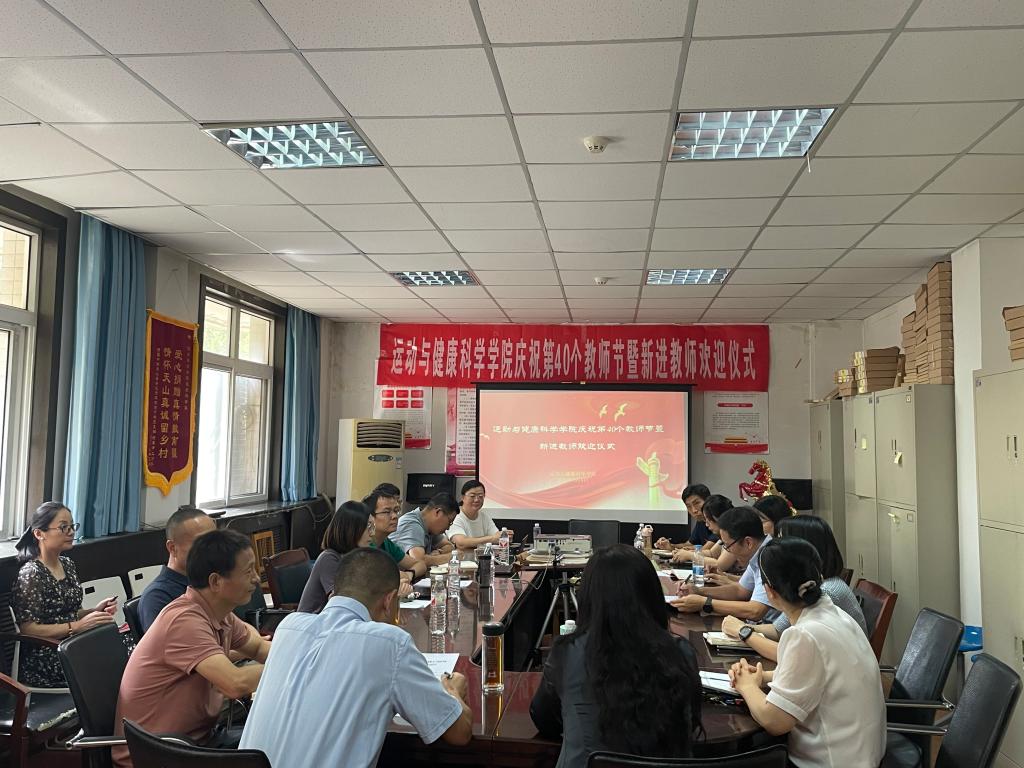2024年9月10日下午,运动与健康科学学院召开庆祝第40个教师节座谈会暨新进教师欢迎仪式,学校党委副书记马海涛、人事处副处长任琳、学院领导班子、各教研室主任、支部书记、科以上干部、老专家代表、老党员教师、优秀教师代表、新进教师及年级辅导员、办公室相关人员等参加了会议。会议由运动与健康科学学院院长刘军主持。