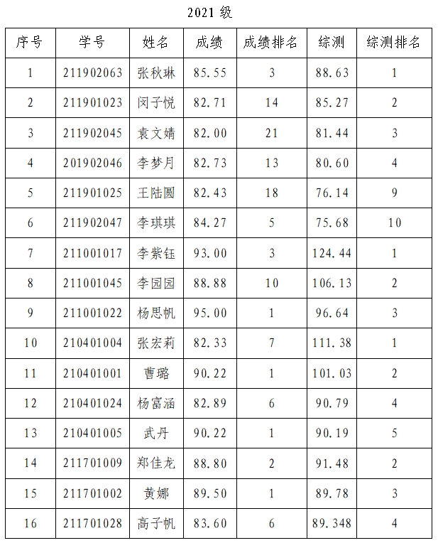 为做好我院2023-2024学年国家励志奖学金评定工作,我院坚持公正、合理、实事求是的工作原则,严格按照《陕西省财政厅等五部门关于印发〈陕西省学生资助专项资金管理办法〉的通知》(陕财办教〔2024〕135号)和《陕西省教育厅办公室关于做好2024年高等学校本专科生国家奖助学金评审汇总工作的通知》(陕教办〔2024〕29号)以及今年会官方网站《关于做好我校2023-2024学年国家励志奖学金评审工作的通知》相关规定要求进行评选工作。现将运动与健康科学学院学院2021级、2022级、2023级获得国家励志奖学金情况公示如下: