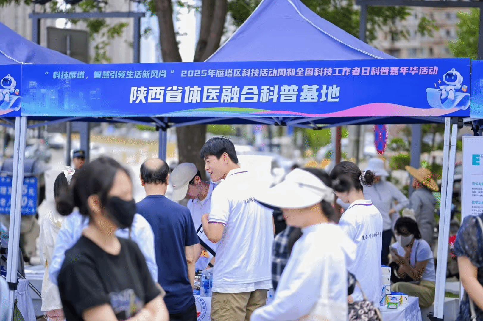 5月23日至24日,2025年雁塔区科技活动周暨全国科技工作者日科普嘉年华在西安市雁塔区M3碧乐城室外广场盛大举办。陕西省体医融合科普基地依托我校运动与健康科学学院,由范育、宋博雅、马新颖等三位青年教师及运动人体科学专业硕士研究生团队共同策划,携“健行有礼”——体医融合科学健身互动展区亮相活动现场,为市民提供了一场科技与健康融合的沉浸式科普体验。