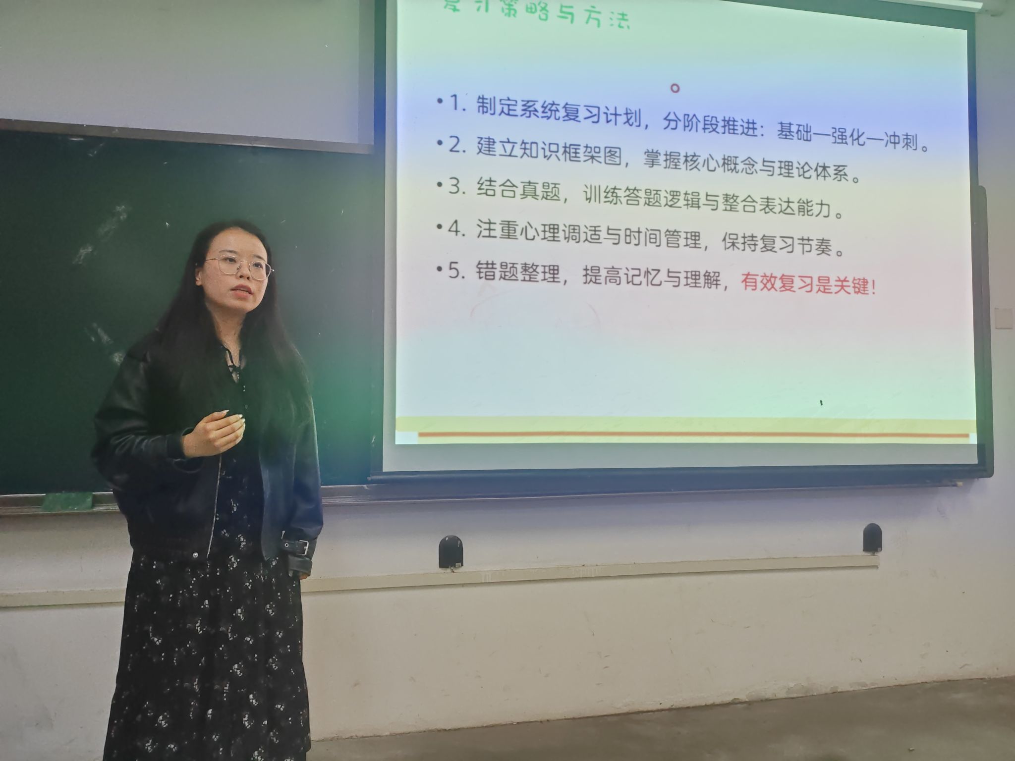会上,刘军院长首先分析2026年考研整体形势,结合学院历届学生考研现状,引导同学们精准定位考研目标、明确备考方向,强调需做好整体规划与分段推进,力争在2026年考研中取得优异成绩。他指出,要以考研工作为抓手,推动学风建设持续向好,助力毕业生实现高质量就业;同时着重强调 2026 届毕业生考研时间的紧迫性,鼓励学生规划利用好备考的黄金60天,最终梦想成真。