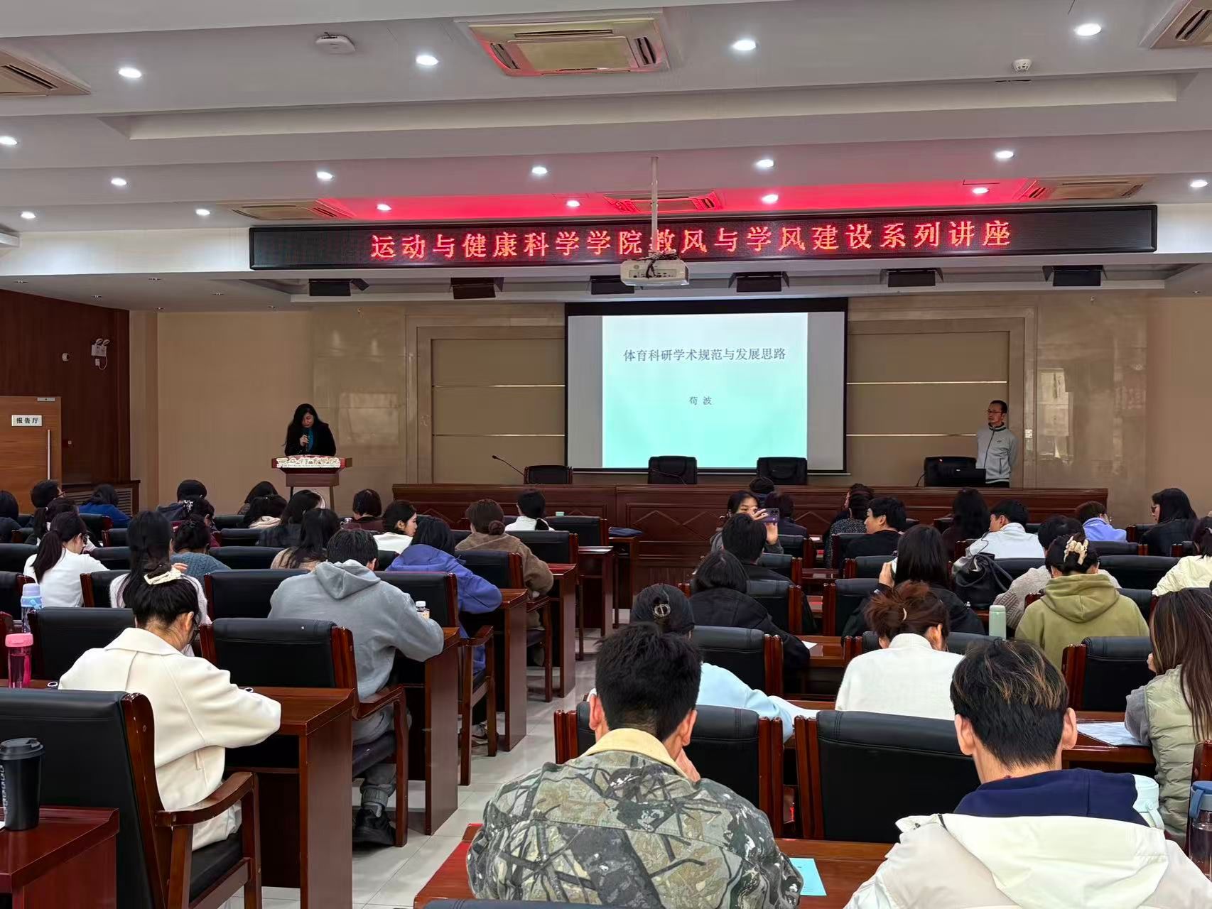 为深入推进学院教风和学风建设,引导师生恪守学术诚信,规范体育科研工作流程,我院于11月4日下午在含光校区二号行政楼六楼报告厅成功举办教风和学风建设系列讲座。学院苟波教授应邀作《体育科研学术规范》的专题报告,本次会议由学院副院长杜新星主持,学院无课教师和部分研究生参加本次讲座。