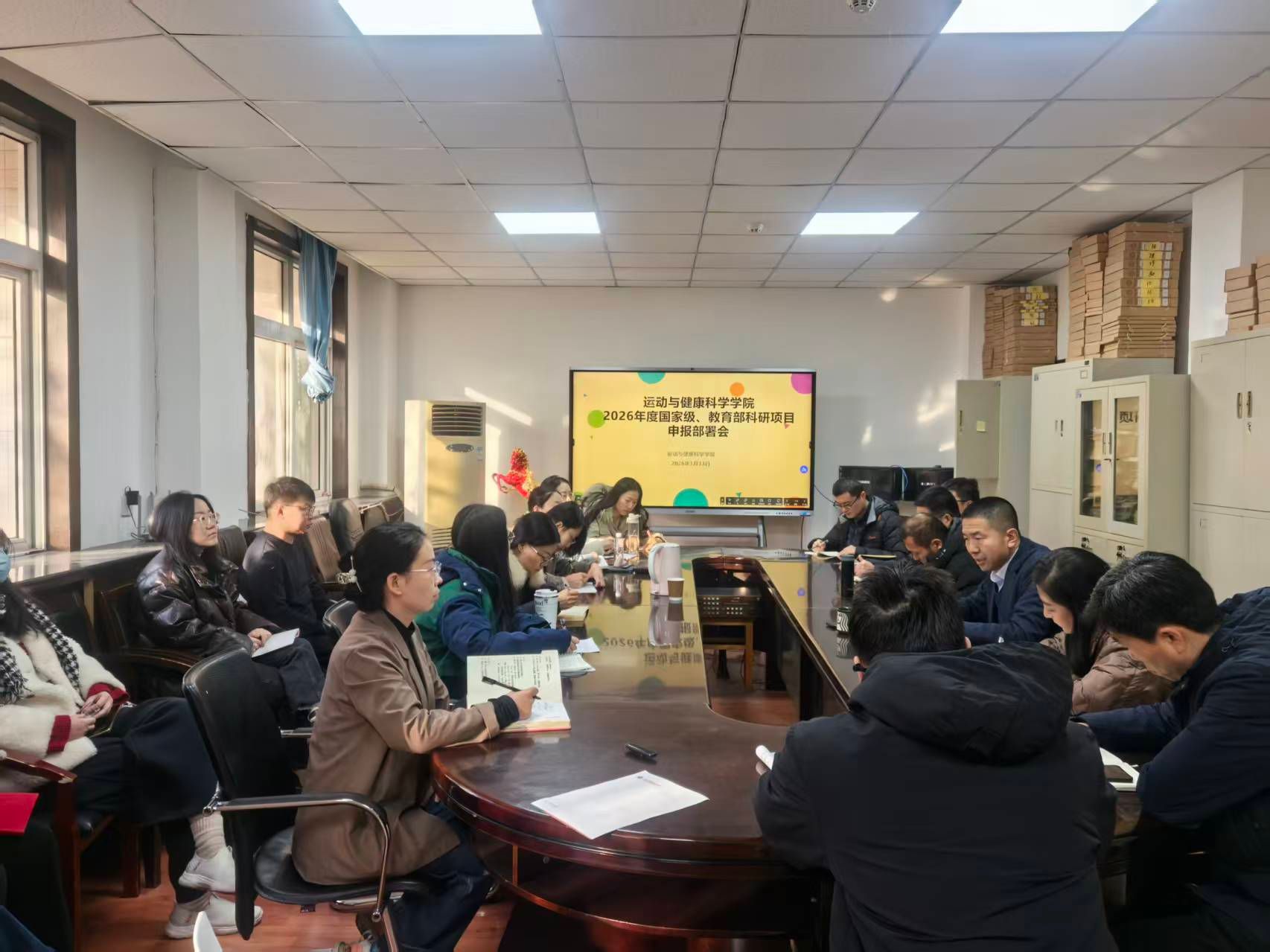 为系统推进2026年度国家级科研项目和成果申报工作,准确把握申报导向,切实提高项目申报质量与立项率,增强学院科研核心竞争力,1月13日上午,运动与健康科学学院在实验楼五楼会议室召开科研项目申报部署会。会议由学院院长刘军主持,各教研室主任、支部书记、学科带头人、近年引进高层次人才和拟申报项目的教师参加会议。