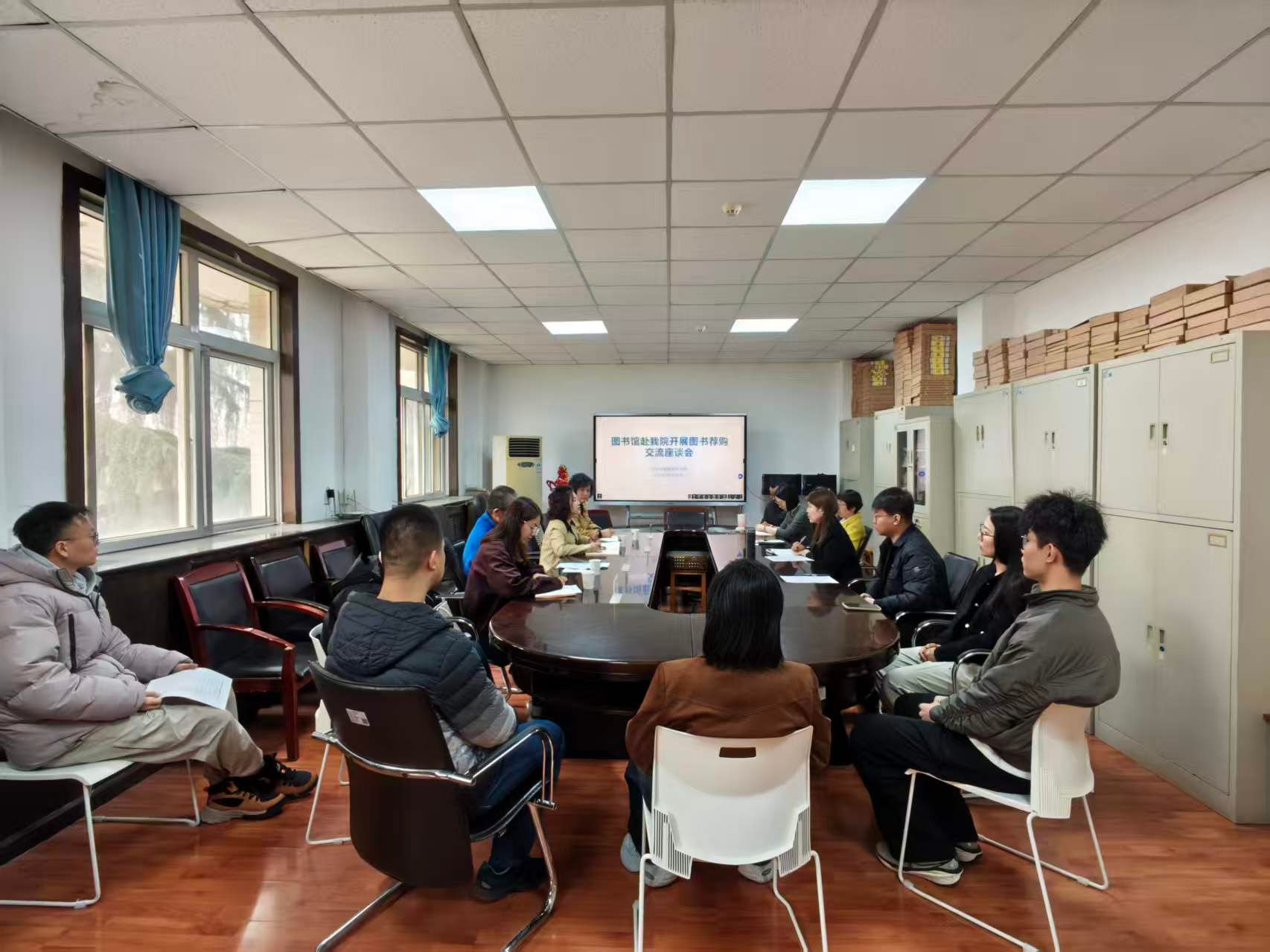 2026 年 3 月 26 日上午,图书馆馆长魏娟丽一行来我院开展图书荐购交流座谈会。学院领导、学术带头人、专业负责人、教研室主任、教师及学生代表参会。会议由副院长马艳主持。