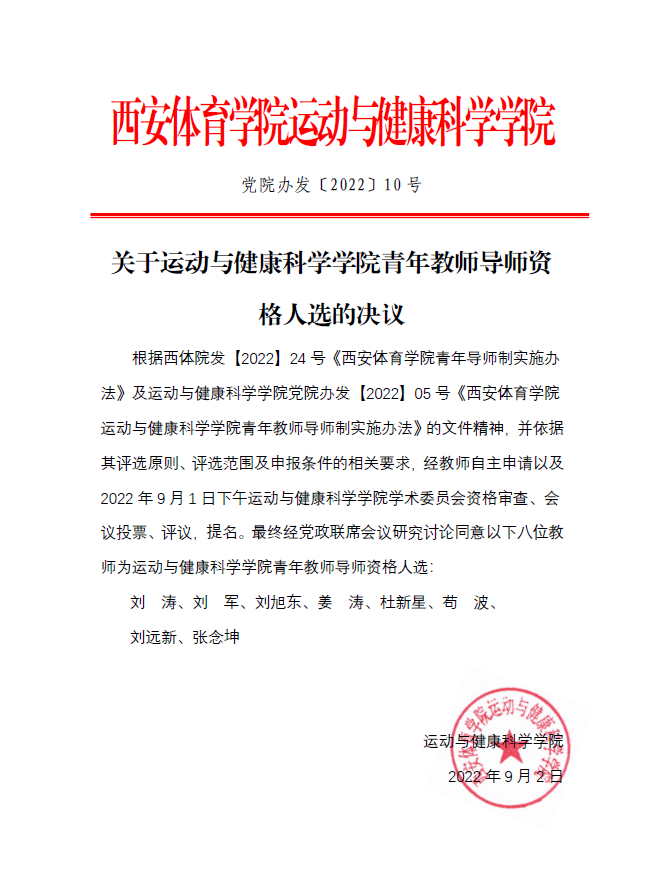 关于运动与健康科学学院青年教师导师资格人选的决议