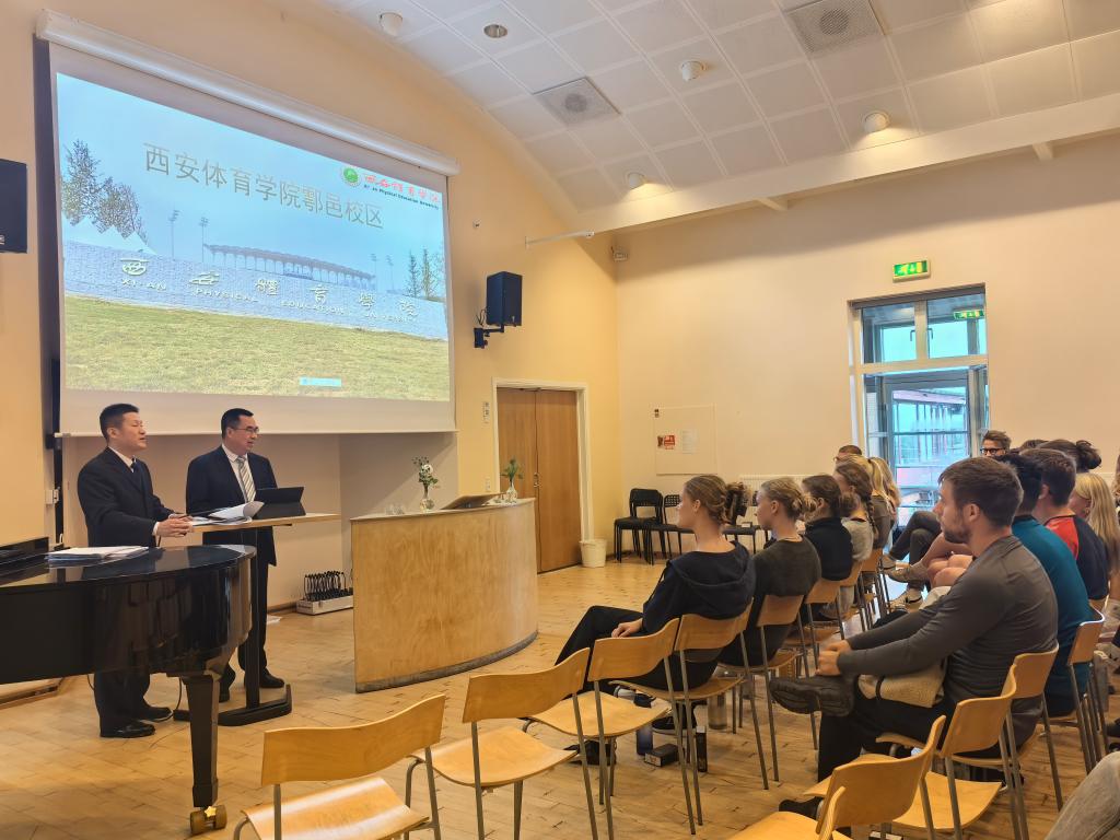 李富生一行先行到访丹麦布赛体育运动学院(Bousse Sports Academy, Denmark)。该院院长Kenneth Retslov热情接待,向李富生一行介绍了学校“寓教于乐、文化交融”的办学理念,并带领我校代表团参观了该校教学和运动设施,感受了学校开设的艺术、音乐、冥想、瑜伽、游泳、球类、健身及水上项目课程。座谈会上,李富生向对方介绍了我校办学历史和发展情况,并与Kenneth Retslov校长就两校在学生培养及教学交流签署了合作备忘录。