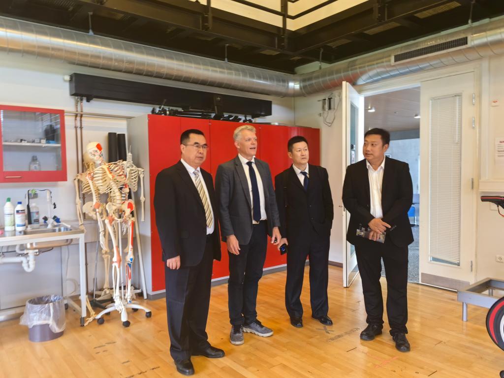 在费恩·伯根教授陪同下,李富生一行又到访了位于丹麦南部欧登塞市的南丹麦大学(University of Southern Denmark)。南丹麦大学体育学院院长Jens Troelsen带领李富生一行深入考察了该院运动场所、教学设施,参观了该校拥有的全欧洲最先进的运动生物力学和人体科学实验室。双方就两校办学理念、体育学科发展情况进行了交流,并签署了教科研合作备忘录。