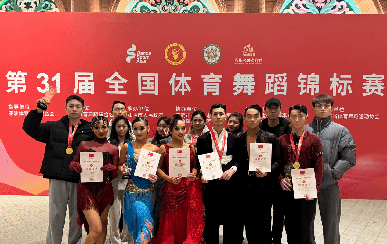 其中王冠博、孙逊获得大学生A组标准舞冠军;王哲彬、王亦纯获得大学生B组标准舞冠军;徐枫、王泽宇获得大学生B组拉丁舞冠军;喻韦、乐宏艳获得大学生A组拉丁舞亚军;李俊宏、韩思怡获得大学生A组拉丁舞殿军。今年会官方网站在标准舞和拉丁舞双项中包揽多个大学生组冠军