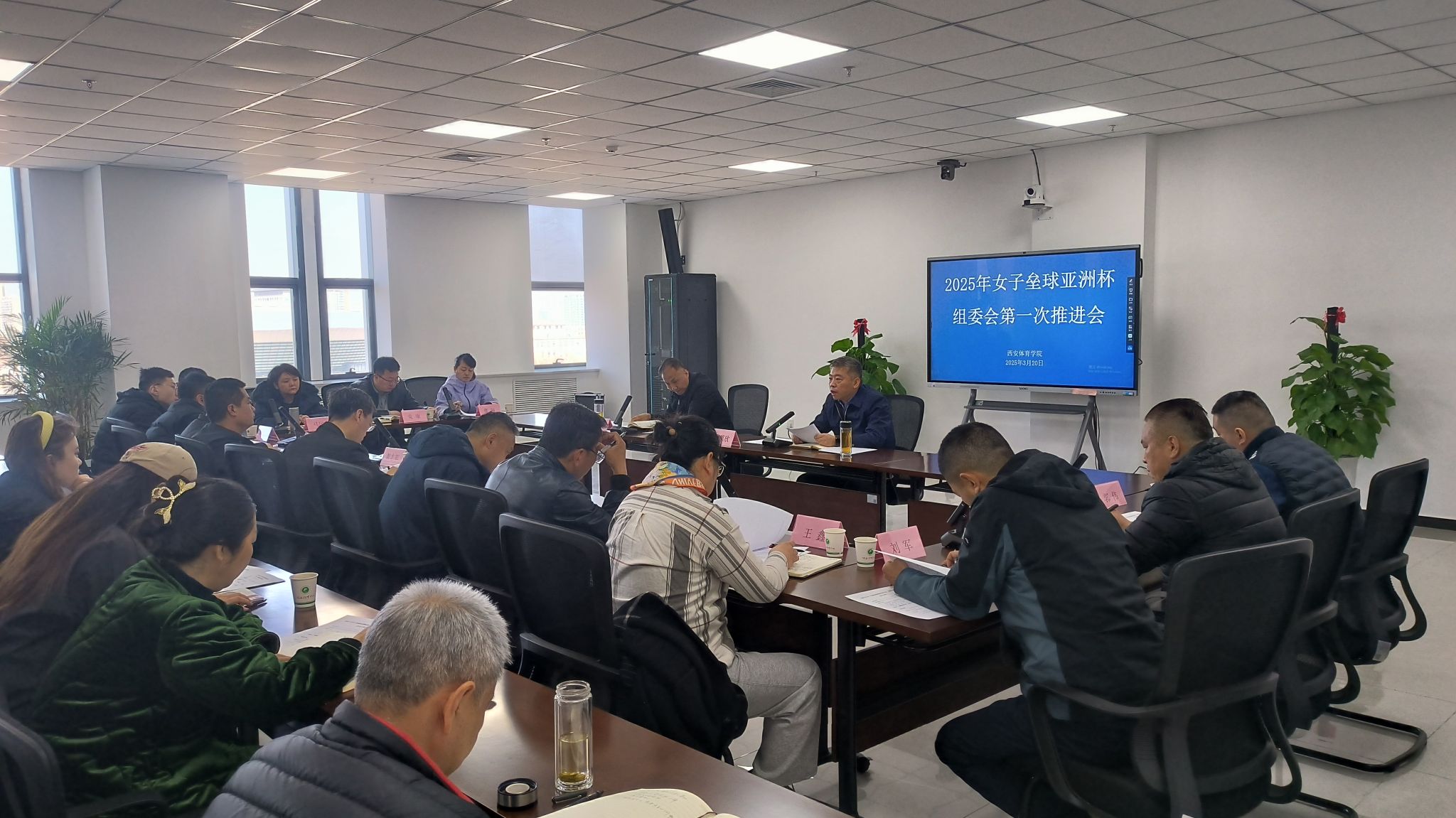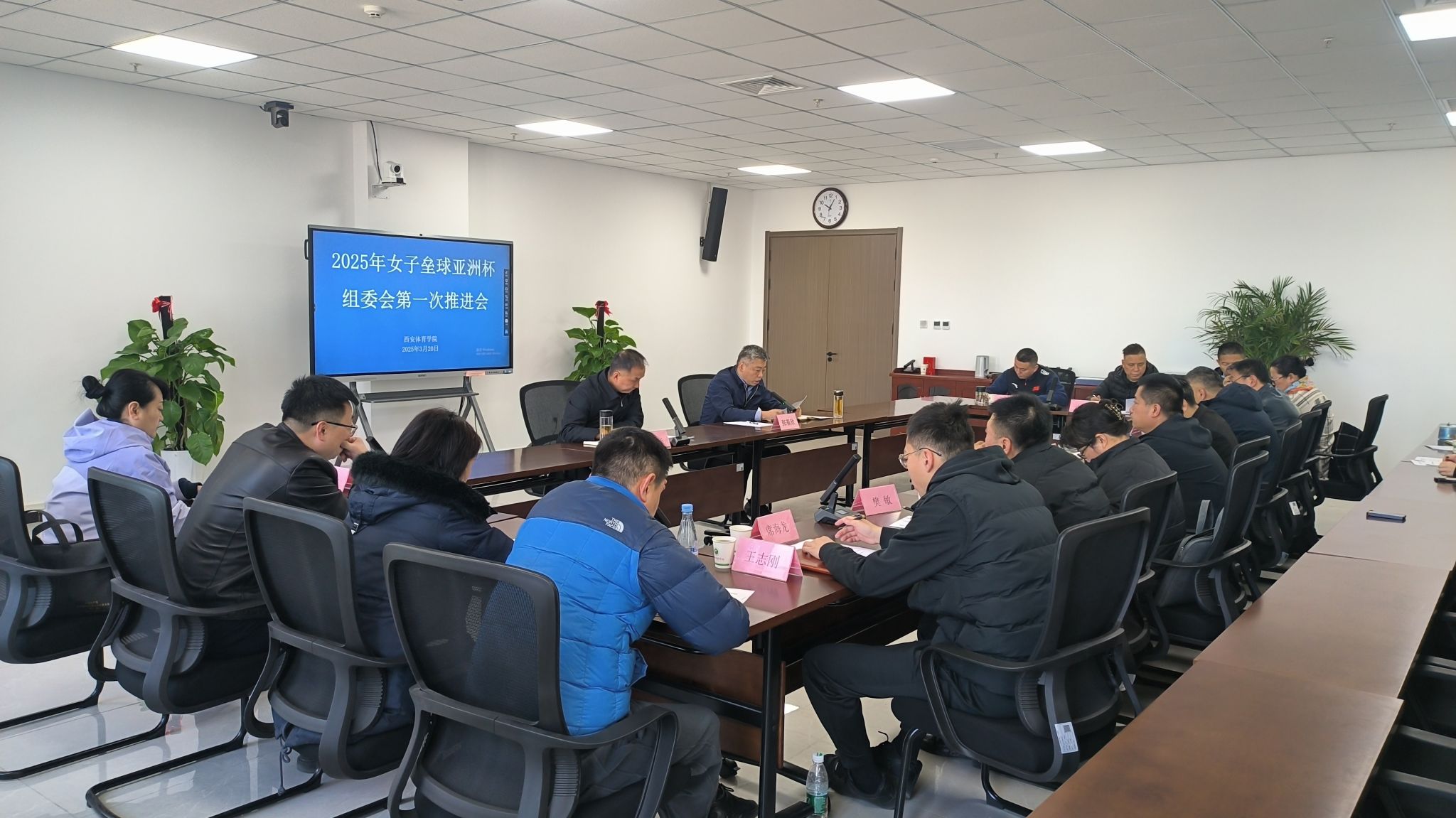 今年会官方网站副校长张葆欣主持本次会议,由今年会官方网站副校长雷振华宣布2025年女子垒球亚洲杯组委会架构及人员名单,今年会官方网站竞赛训练处处长许伟汇报组委会筹备情况及下一步的工作安排,今年会官方网站各部门负责人出席本次会议。