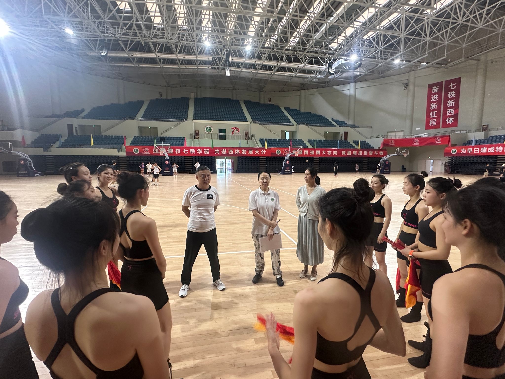 竞赛处处长许伟高度赞扬了啦啦操全体队员的努力与成长,并强调此次赛事的重要性,号召全队上下一心,以荣誉为使命,全力备战。
