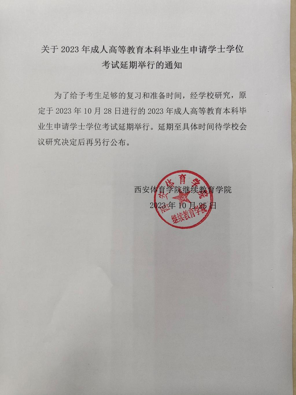 关于2023年成人高等教育本科毕业生申请学士学位考试延期举行的通知