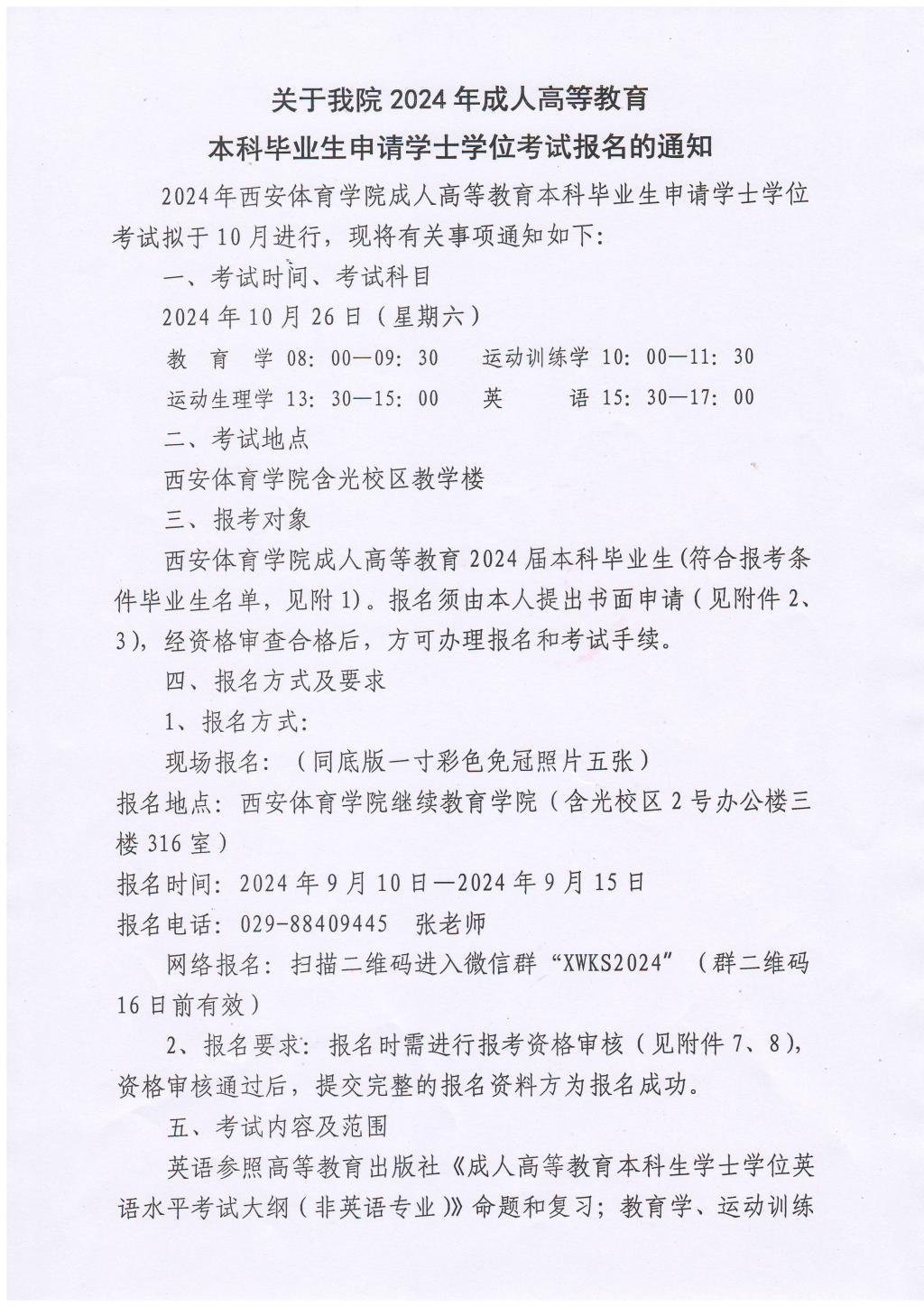 关于我院2024年成人高等教育本科毕业生申请学士学位考试报名的通知