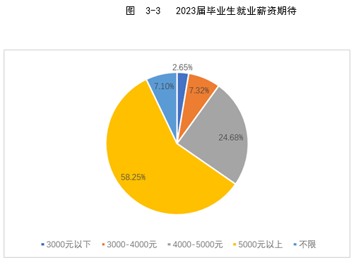 对我校2023届毕业生就业薪资期待进行调查,其中4000-5000元以上占比最高,其次是5000元以上,具体统计结果如下图所示:
