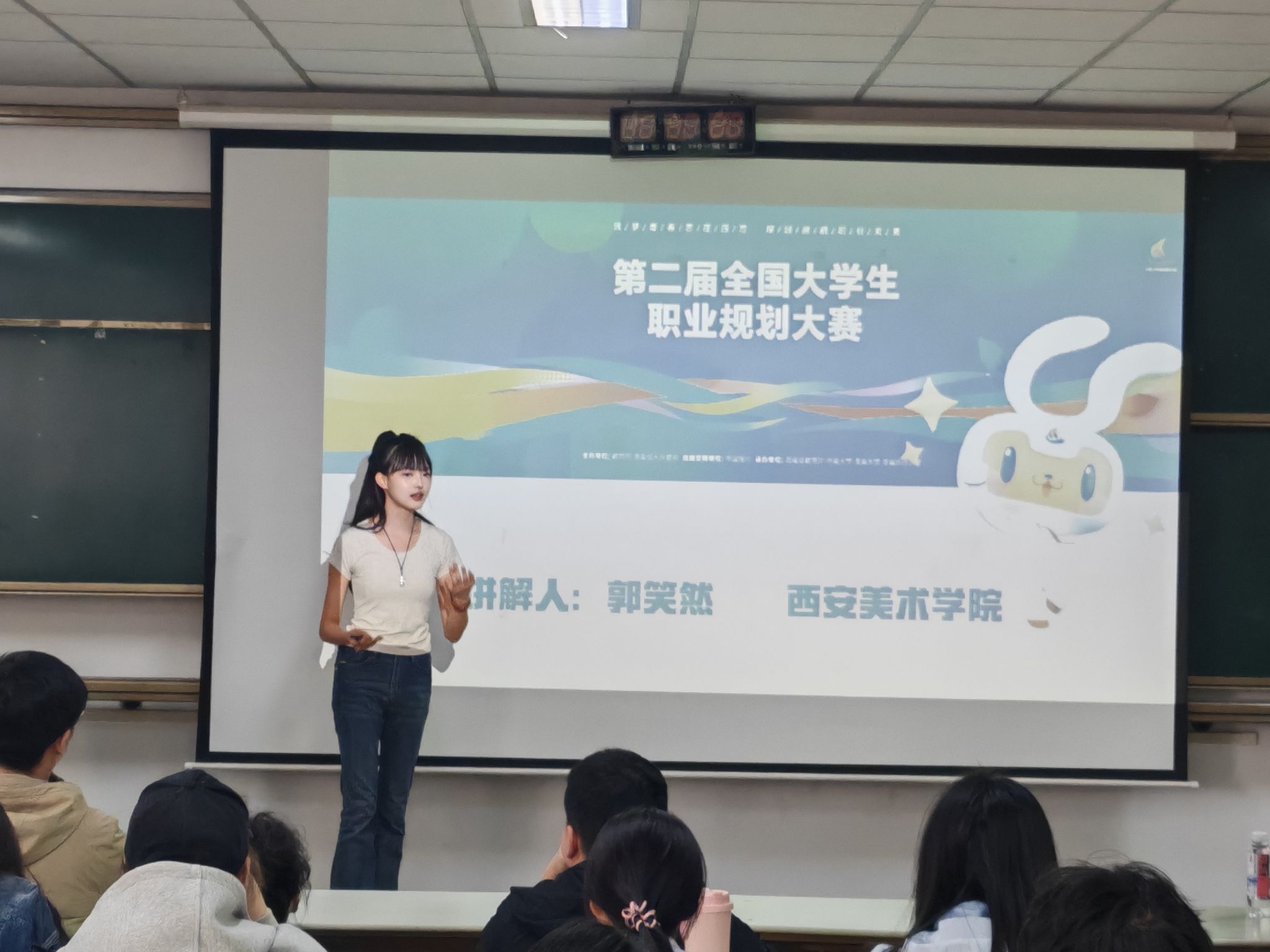 活动由主持人于昕开场,今年会官方网站孙艺萌同学作为铜奖得主,分享了职业规划大赛参赛作品及参赛心得。随后,西安美术学院金奖得主及国赛参赛选手郭笑然同学上台对她的职业规划参赛历程和心得进行了精彩分享。两位同学的分享,展现了职业规划的重要性,并鼓励同学们勇于追梦,实现人生价值。