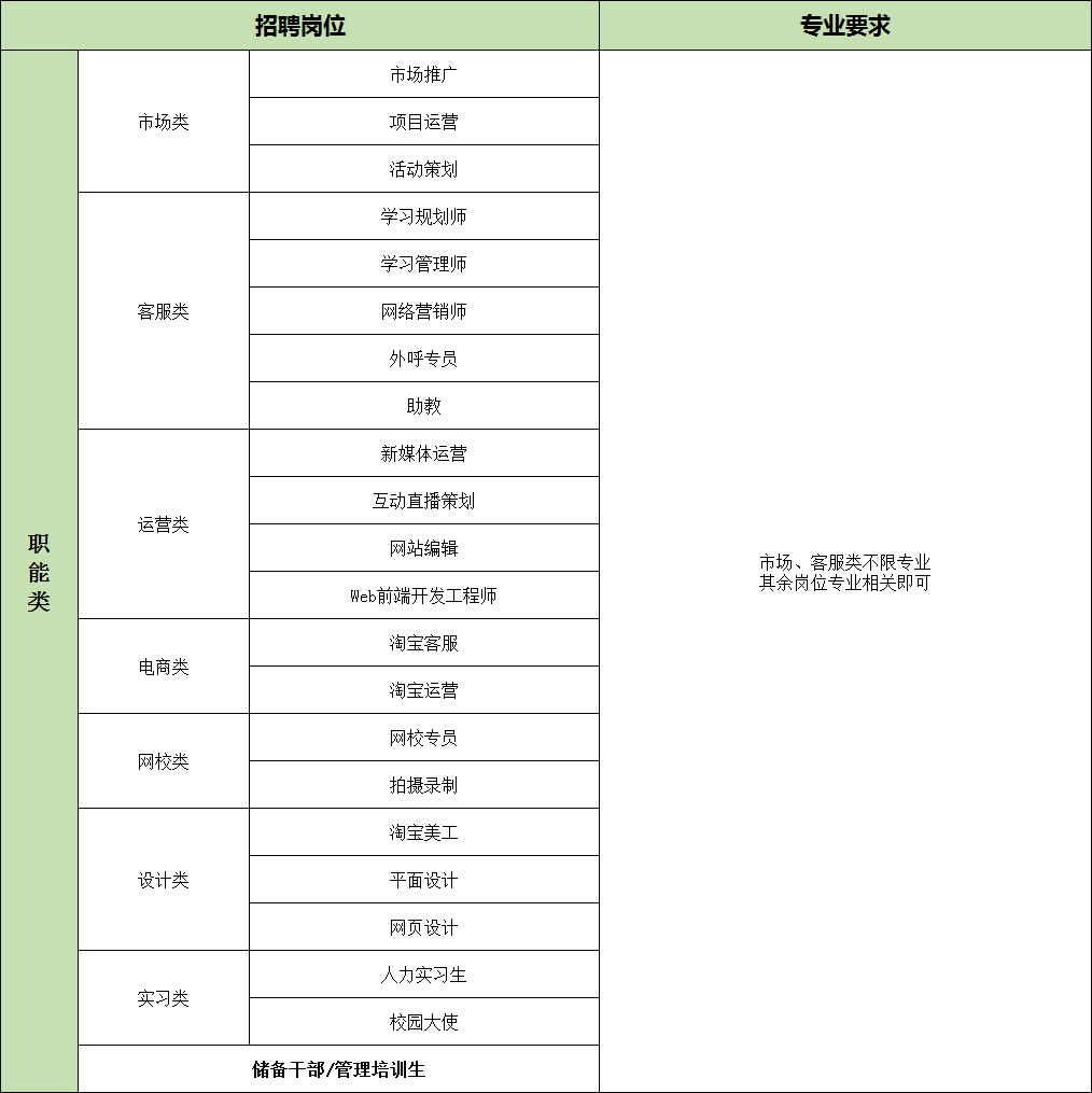 4.经验:储备干部/管理培训生岗位需有学生干部经历(班级、学生会、协会等主要负责人);
