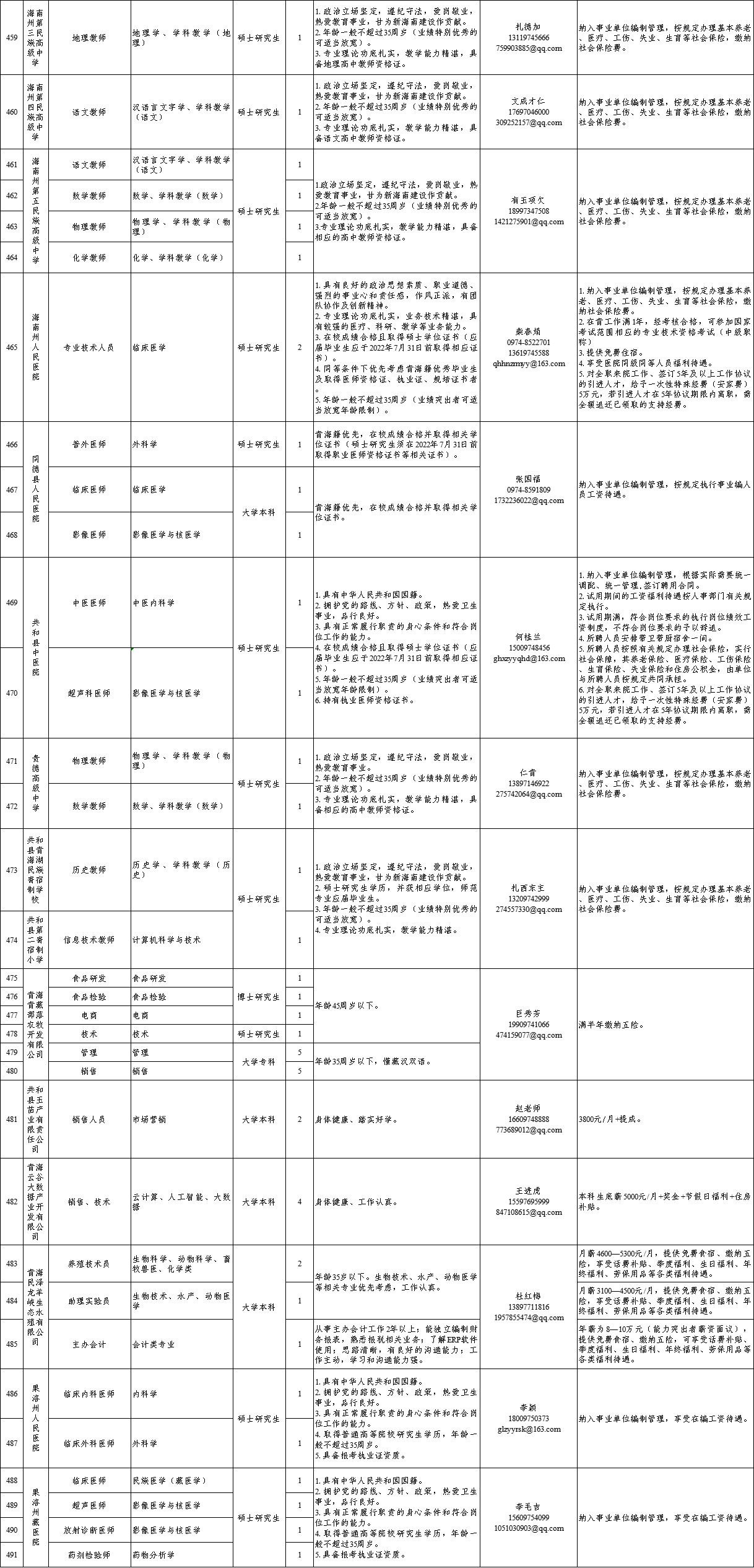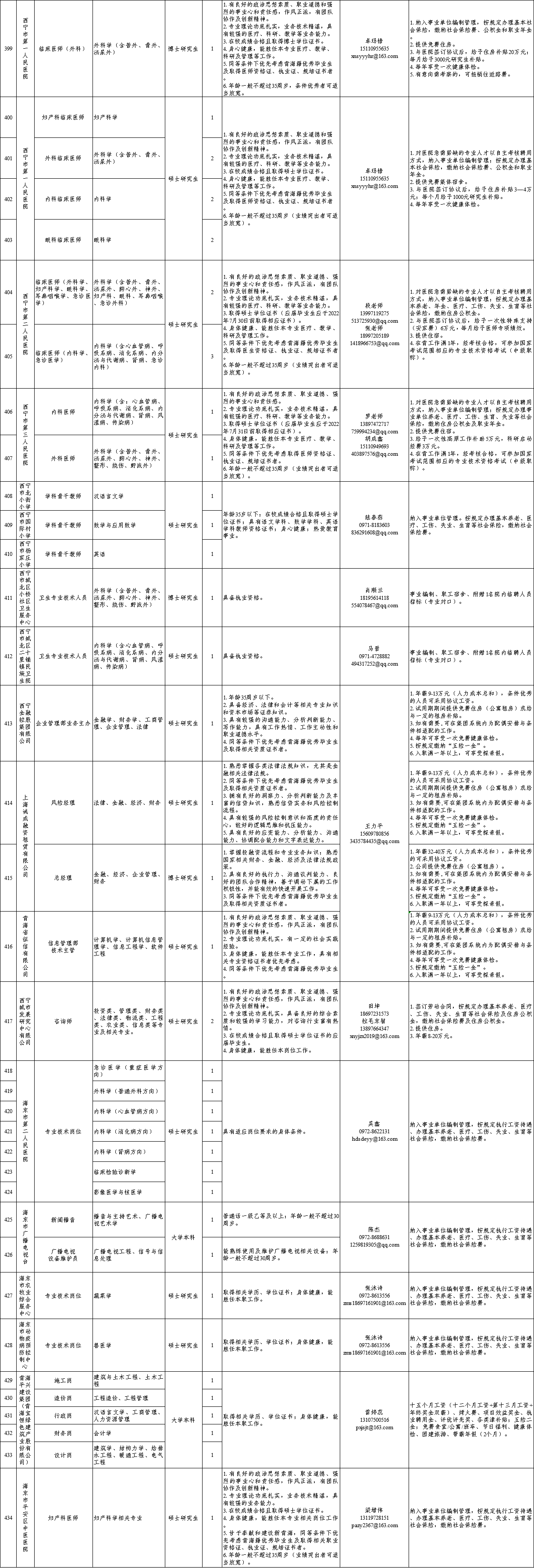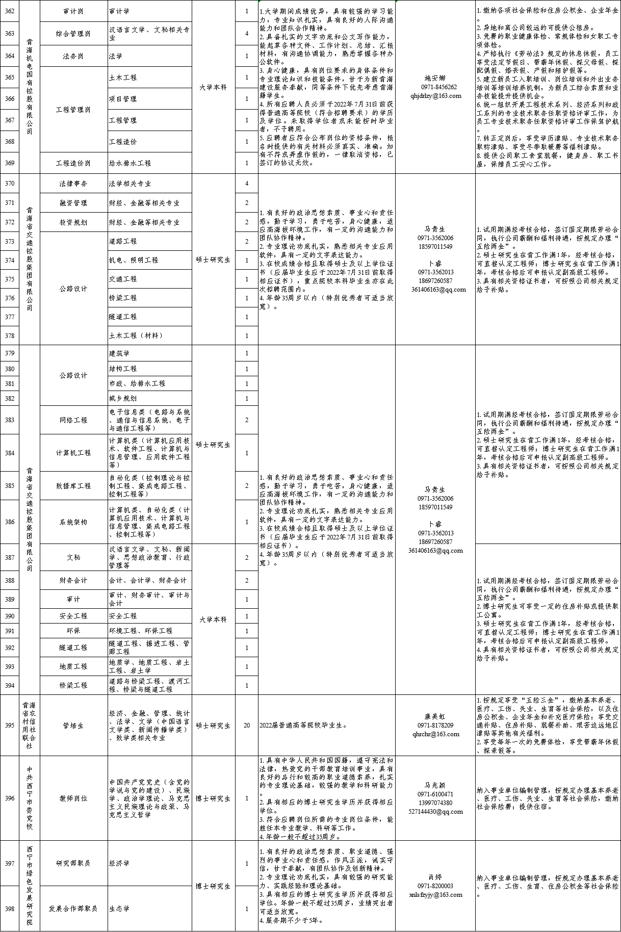 附件:青海省2022年度引进高校优秀应届毕业生需求汇总表