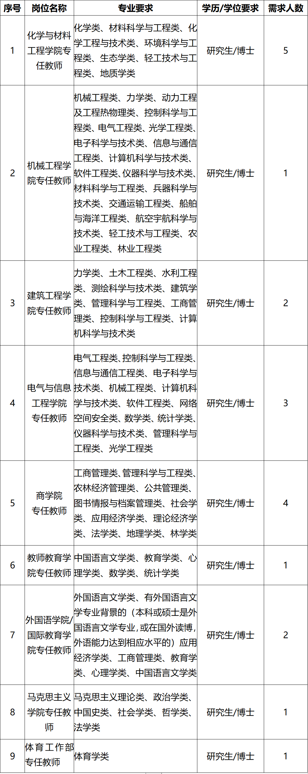 政治素质良好,热爱祖国,拥护中国共产党的领导,拥护党的路线方针政策;遵纪守法,敬业爱岗,具有良好的品德修养和职业道德;善于团结协作,具有创新意识,愿为学校发展、学科专业建设和人才培养做出贡献;身心健康,能够胜任相应岗位工作的要求及具备岗位所需的其他条件。主要分为以下八个类别:
