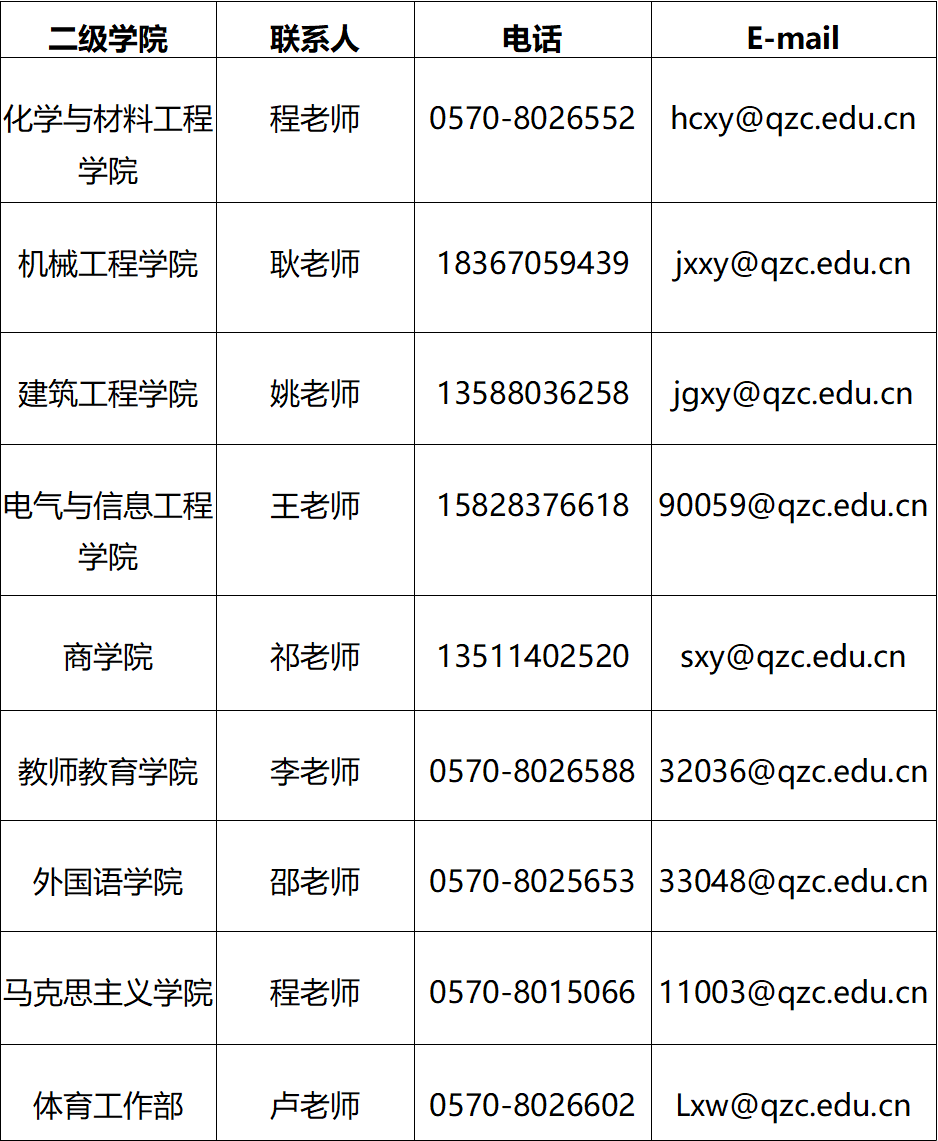 (三)相关流程信息公布在衢州学院官网,请应聘人员及时查看。请保持报名表上的联系电话畅通,以便及时通知,应聘者不按规定时间地点参加面试面谈、考核、体检等视作放弃。