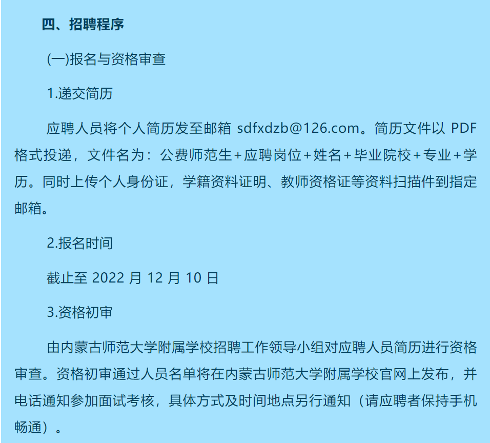 内蒙古师范大学附属学校公费师范生专项招聘公告